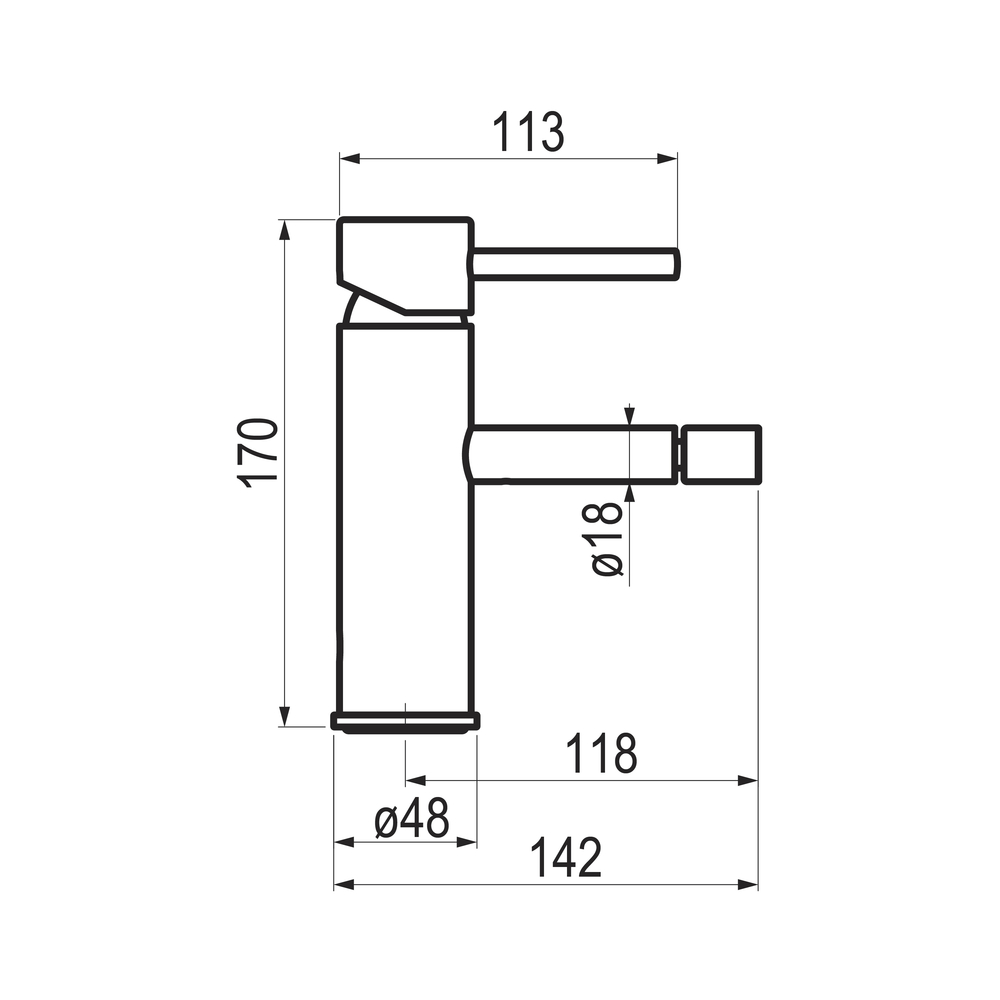 Grifo monomando bidet para instalación sobre repisa.