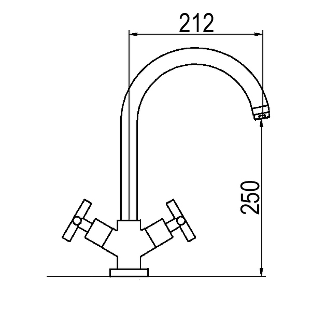 Grifo fabricado en latón con acabado cromado o cromo mate. Presión mínima de uso: 0,5 bar. Accionamiento mediante volantes. Cuerpo para instalación en un único orificio.