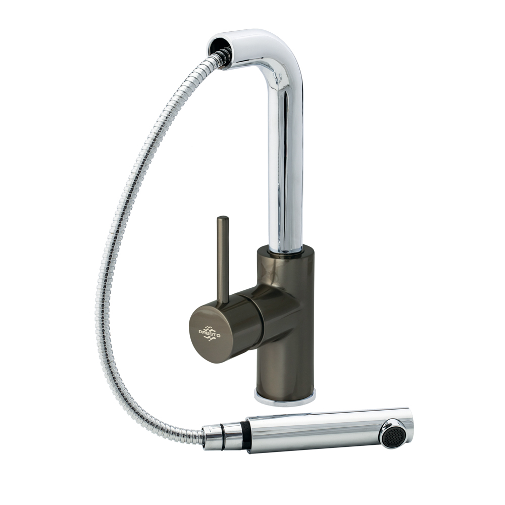 Grifo fabricado en latón con acabado cromado o cromo negro cepillado, según modelo. Presión mínima de uso: 0,5 bar. Accionamiento mediante maneta. Cuerpo para instalación en un único orificio. Cartucho sellado con discos cerámicos de diámetro 35 mm. Salida de agua mediante rótula dirigible.