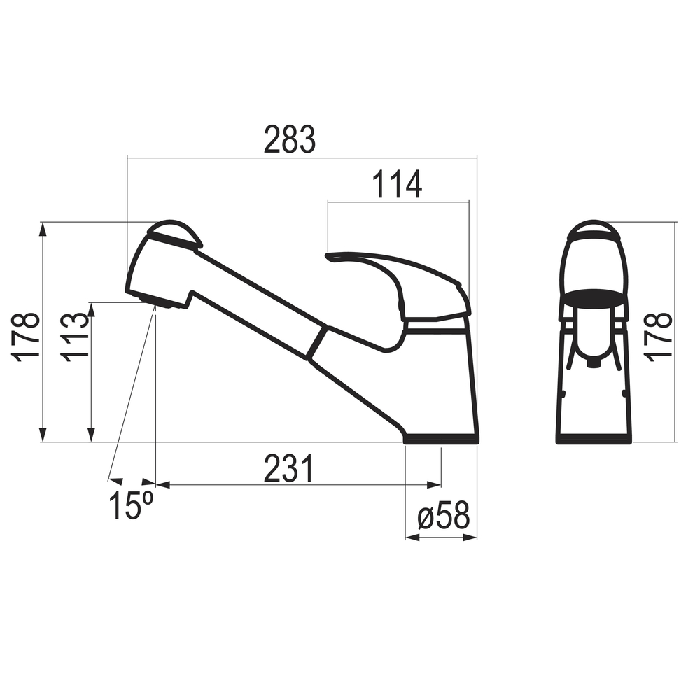 Grifo cocina caño bajo con ducha extensible 2 funciones Alfa cromo mate