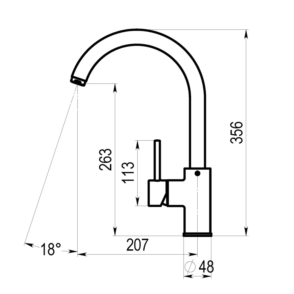 Grifo monomando de cocina de caño alto para instalación sobre repisa.
