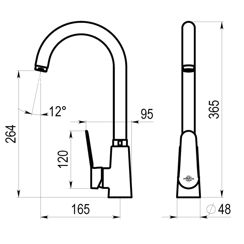 Grifo monomando de cocina de caño alto para instalación sobre repisa.