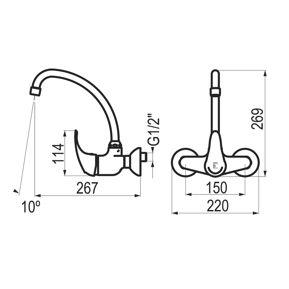 Grifo cocina de pared caño curvo Alfa