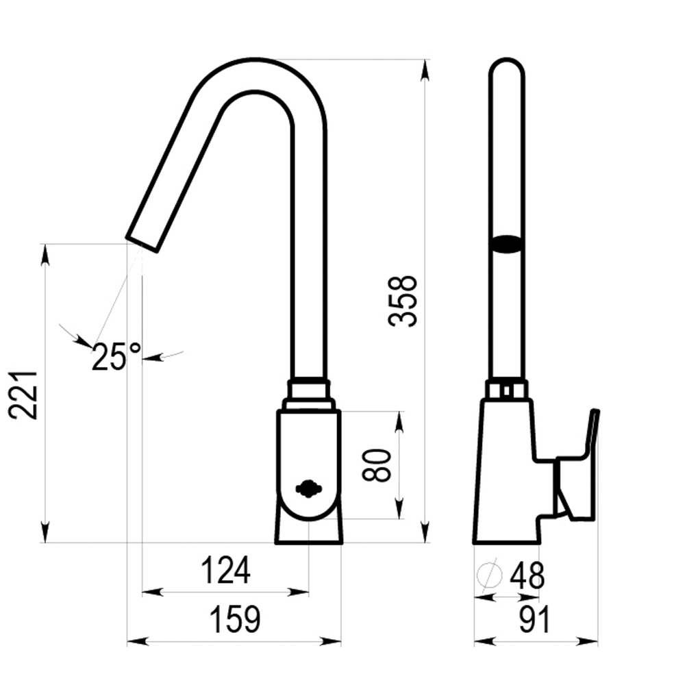 Grifo monomando de cocina de caño alto para instalación sobre repisa.