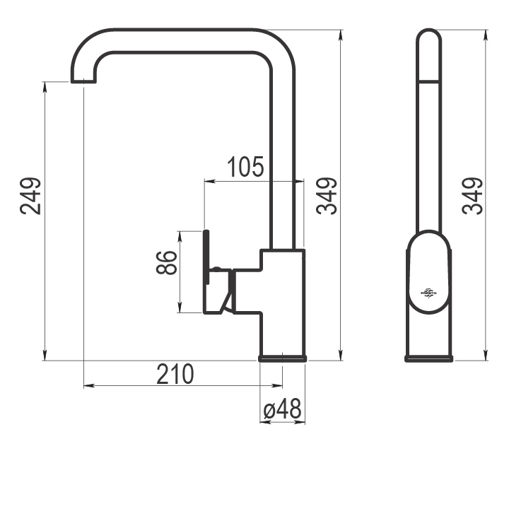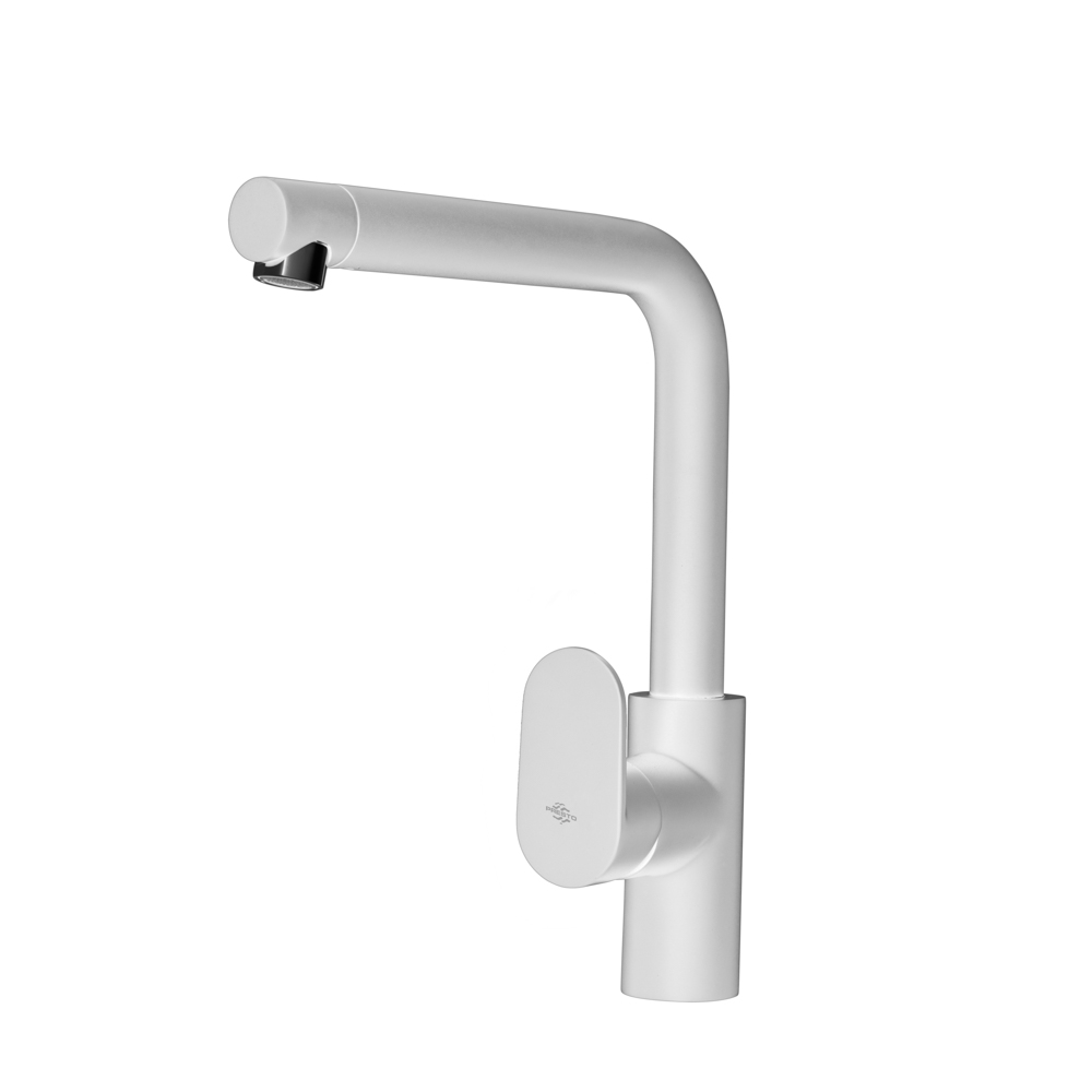 Grifo fabricado en latón con acabado cromado, blanco y negro. Presión mínima de uso: 0,5 bar. Accionamiento mediante maneta. Cuerpo para instalación en un único orificio. Cartucho sellado mezclador con discos cerámicos de diámetro 35 mm.