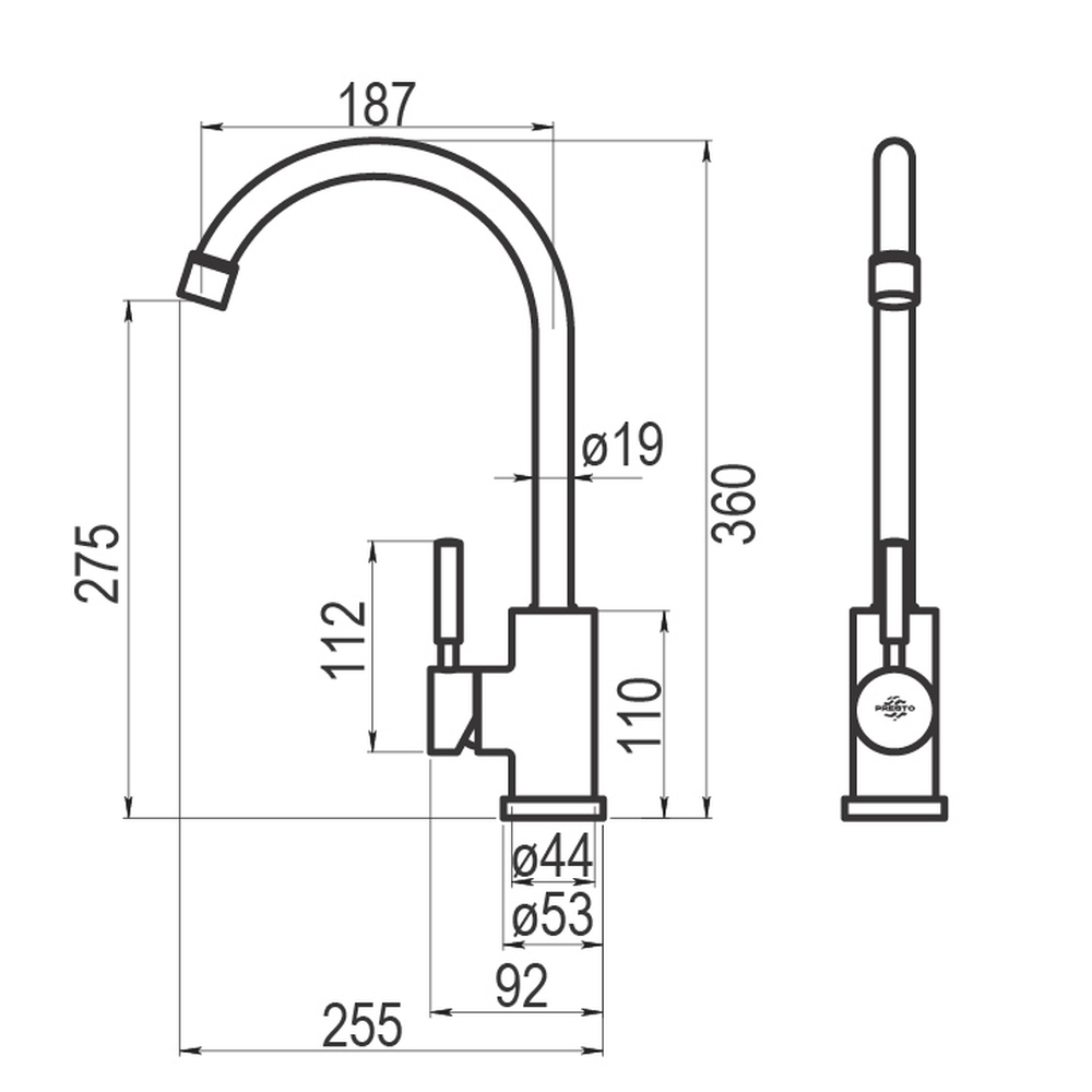 Grifo fabricado en acero inoxidable. Presión mínima de uso: 0,5 bar. Accionamiento mediante maneta. Cuerpo para instalación en un único orificio. Cartucho sellado mezclador con discos cerámicos de diámetro 35 mm.