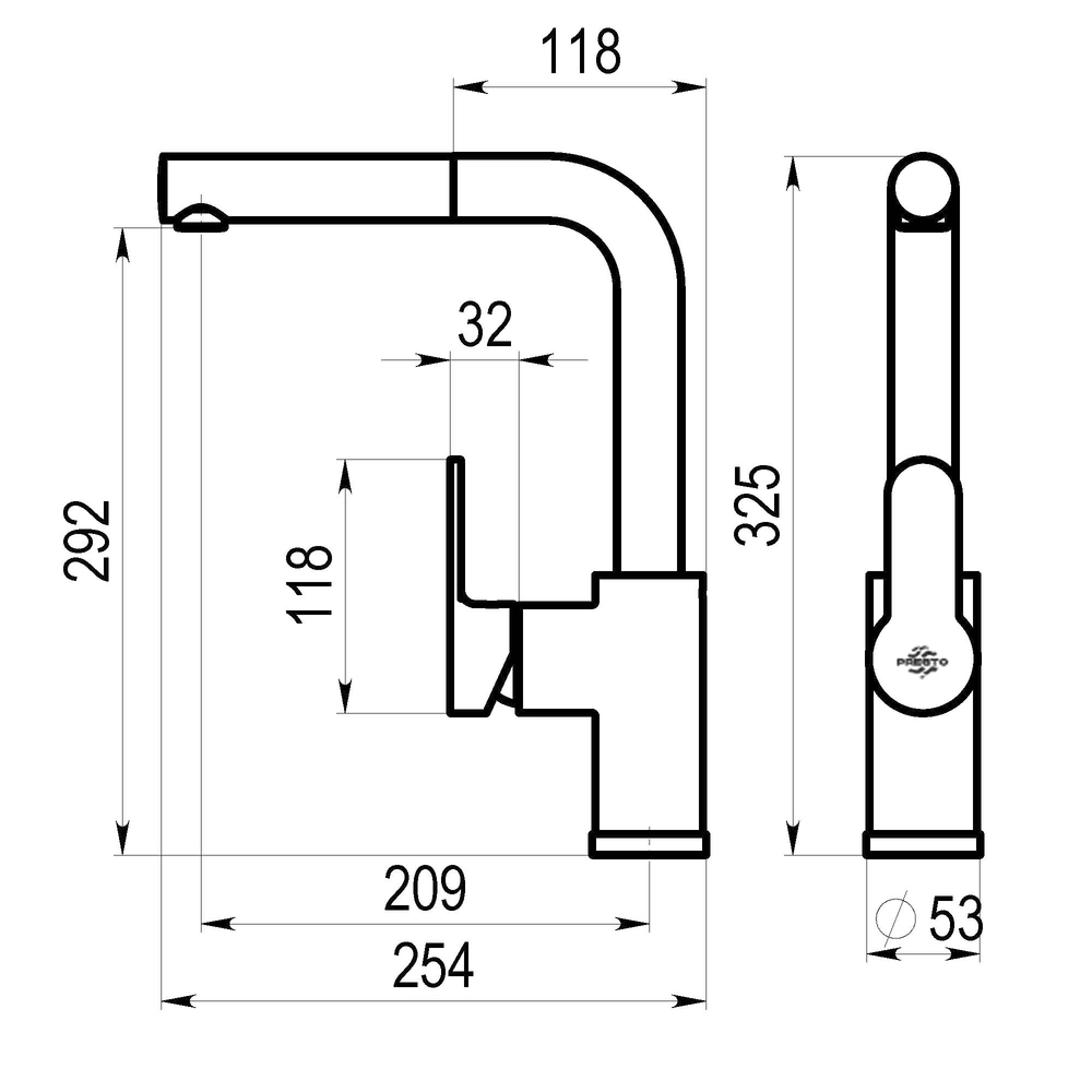 Grifo monomando de cocina de caño alto para instalación sobre repisa.