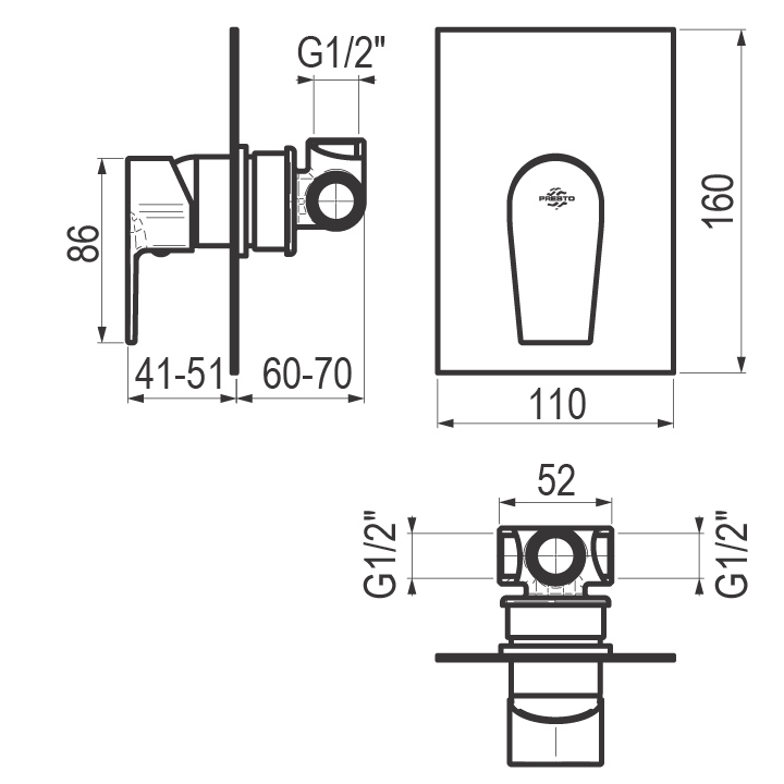 Grifo monomando ducha para instalación mural empotrable.