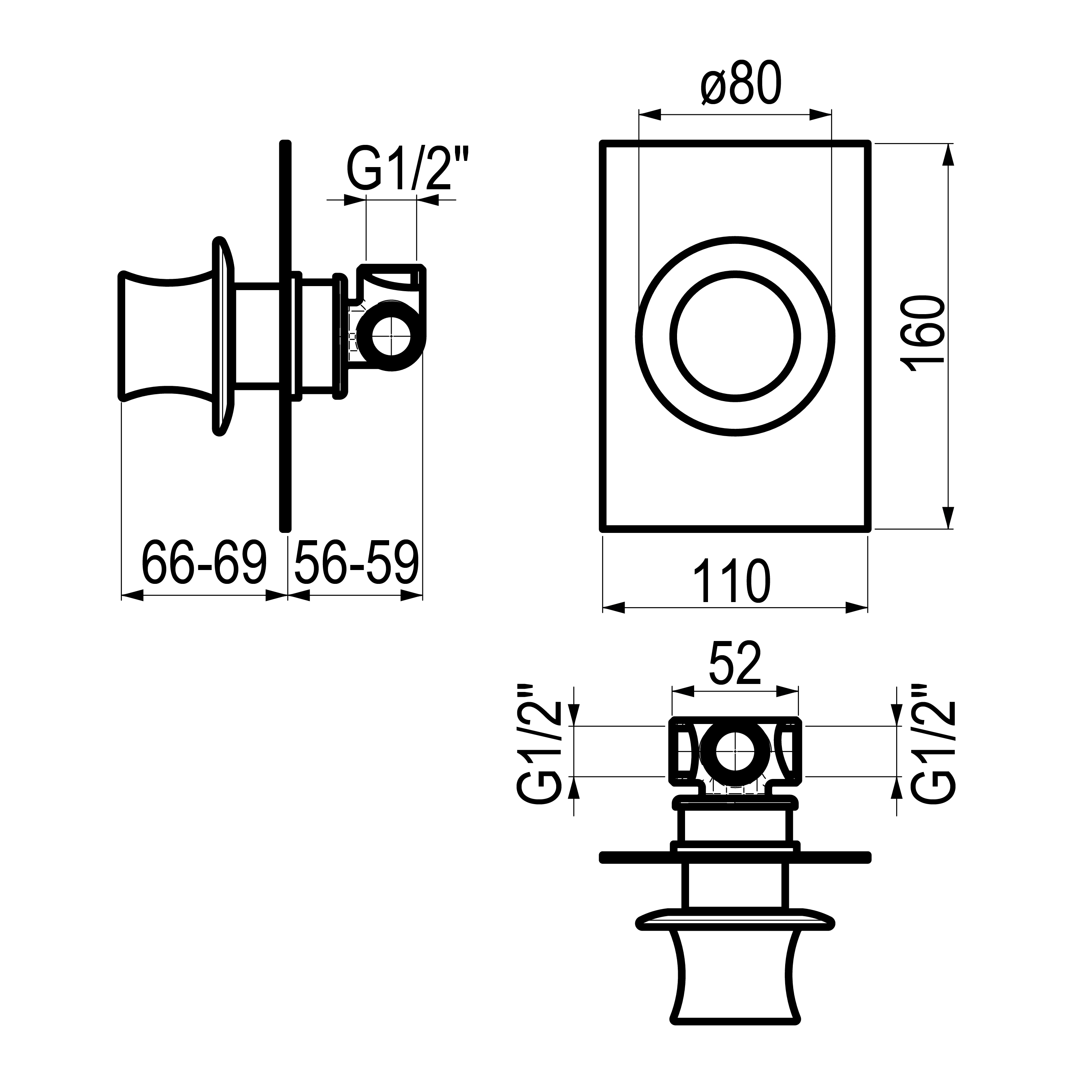 Grifo fabricado en latón con acabado cromado. Presión mínima de uso: 0,5 bar. Accionamiento mediante maneta. Cartucho sellado con discos cerámicos de diámetro 35 mm. Placa embellecedora regulable.