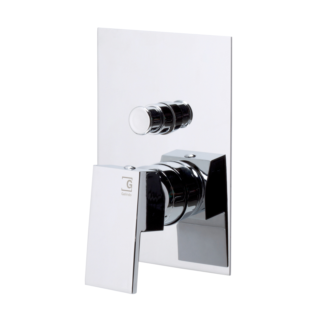 ^Grifo fabricado en latón con acabado cromado. Presión mínima de uso: 0,5 bar. Accionamiento mediante maneta.Cartucho sellado mezclador con discos cerámicos de diámetro 35 mm. Selección de salidas mediante inversor. Placa embellecedora regulable.
