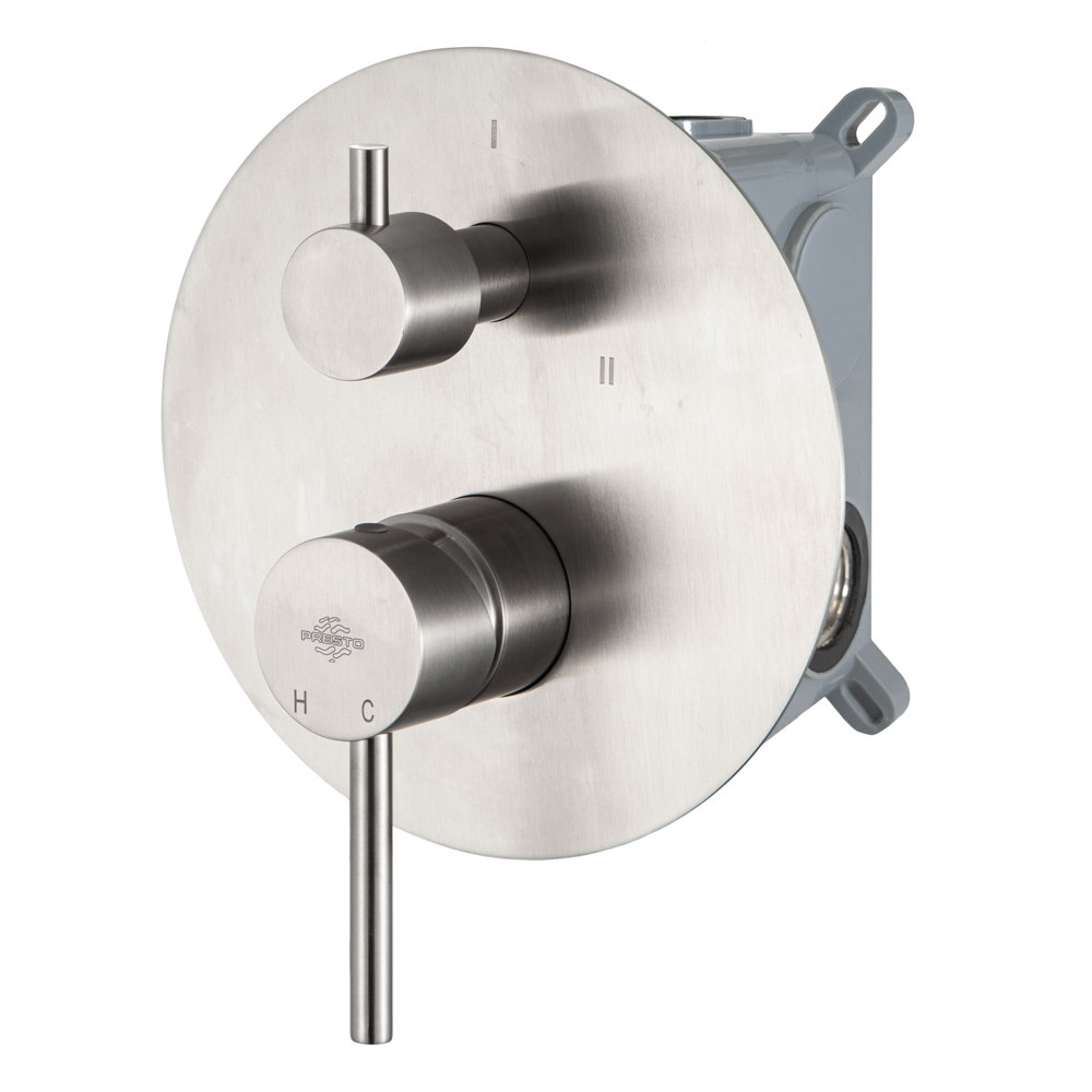 Grifo monomando ducha 2 vías para instalación mural empotrable.