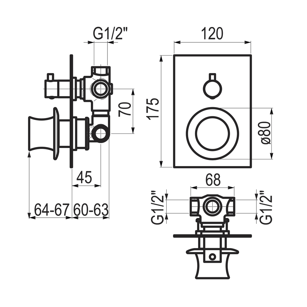 Grifo monomando ducha 3 vías para instalación mural empotrable.