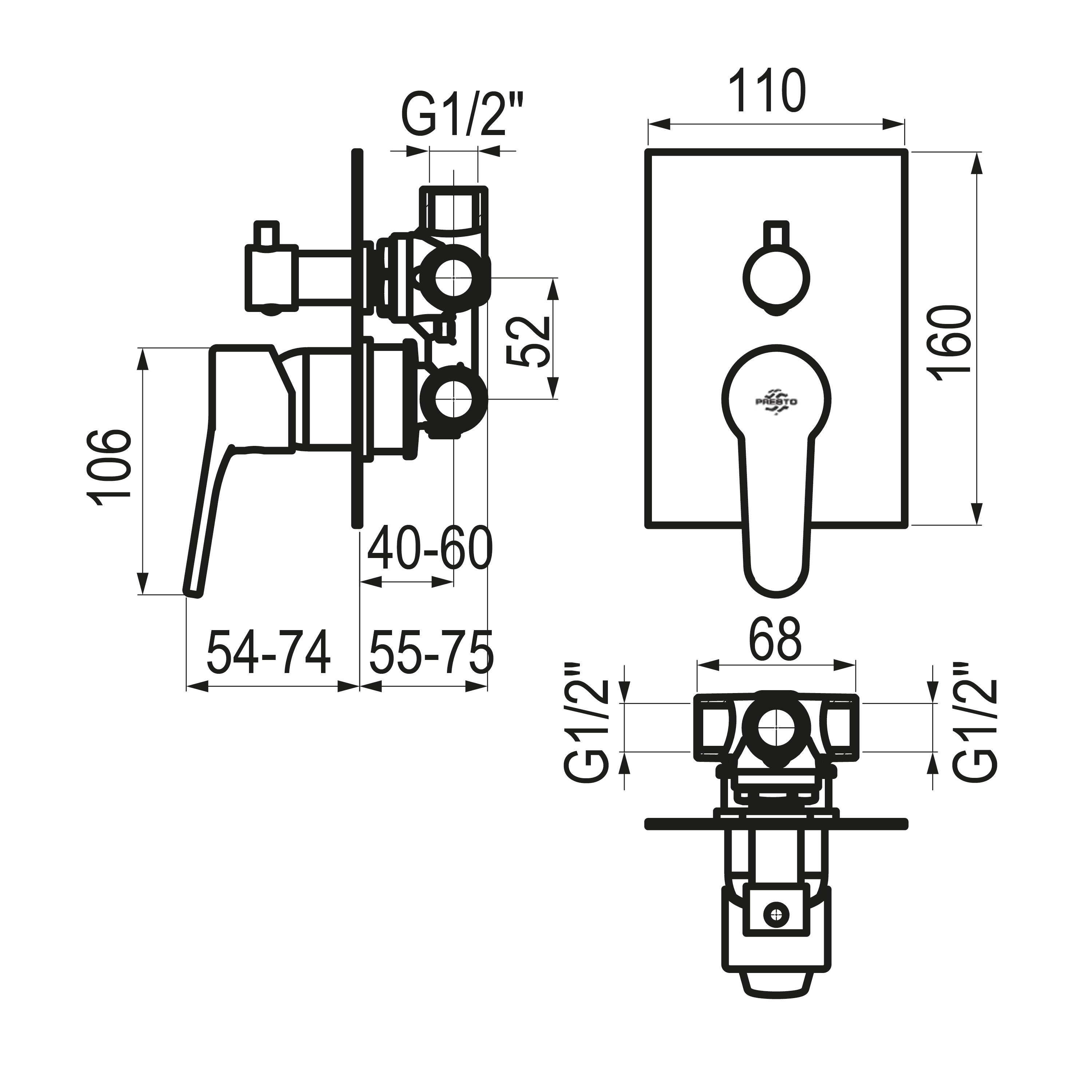 ^Grifo fabricado en latón con acabado cromado o negro,según modelo. Selección de salida mediante inversor. Placa embellecedora regulable. Caudal 10 l/min. a 3 bar y máxima apertura. Entrada y salida G1/2 hembra. Temperatura admisible de agua: los materiales que componen las piezas de los grifos pueden soportar una temperatura máxima de 70ºC. Suministrado con placa embellecedora. Presión mínima de uso: 0,5 bar. Cartucho sellado con discos cerámicos de diámetro 35 mm. Cartucho desviador diámetro de 25 mm. Accionamiento mediante maneta monomando.