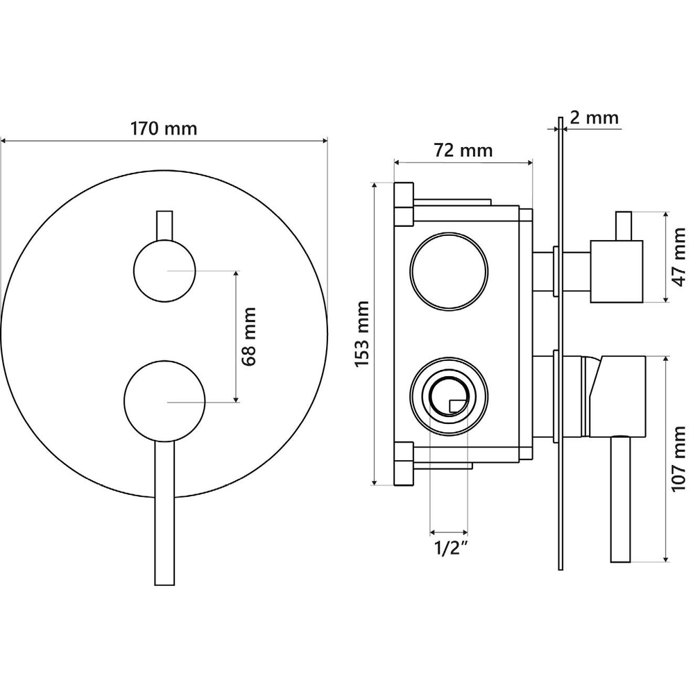 Grifo monomando ducha 3 vías para instalación mural empotrable.