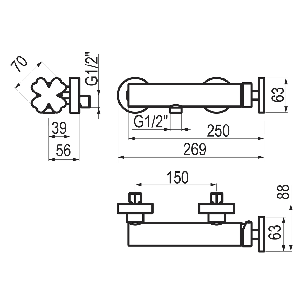 Grifo monomando de ducha para instalación mural visto.