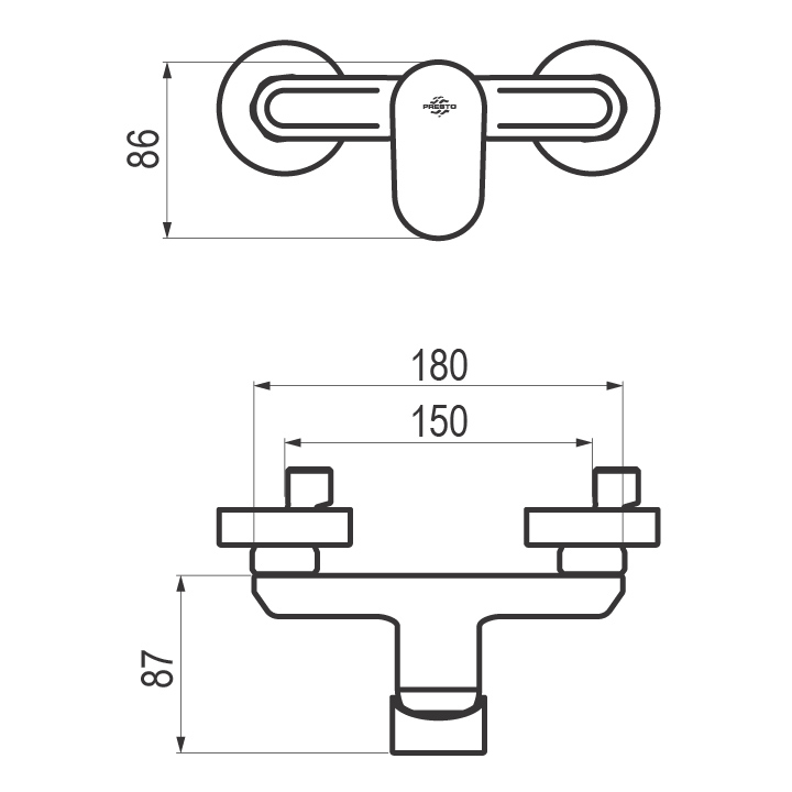 Grifo monomando de ducha para instalación mural visto.
