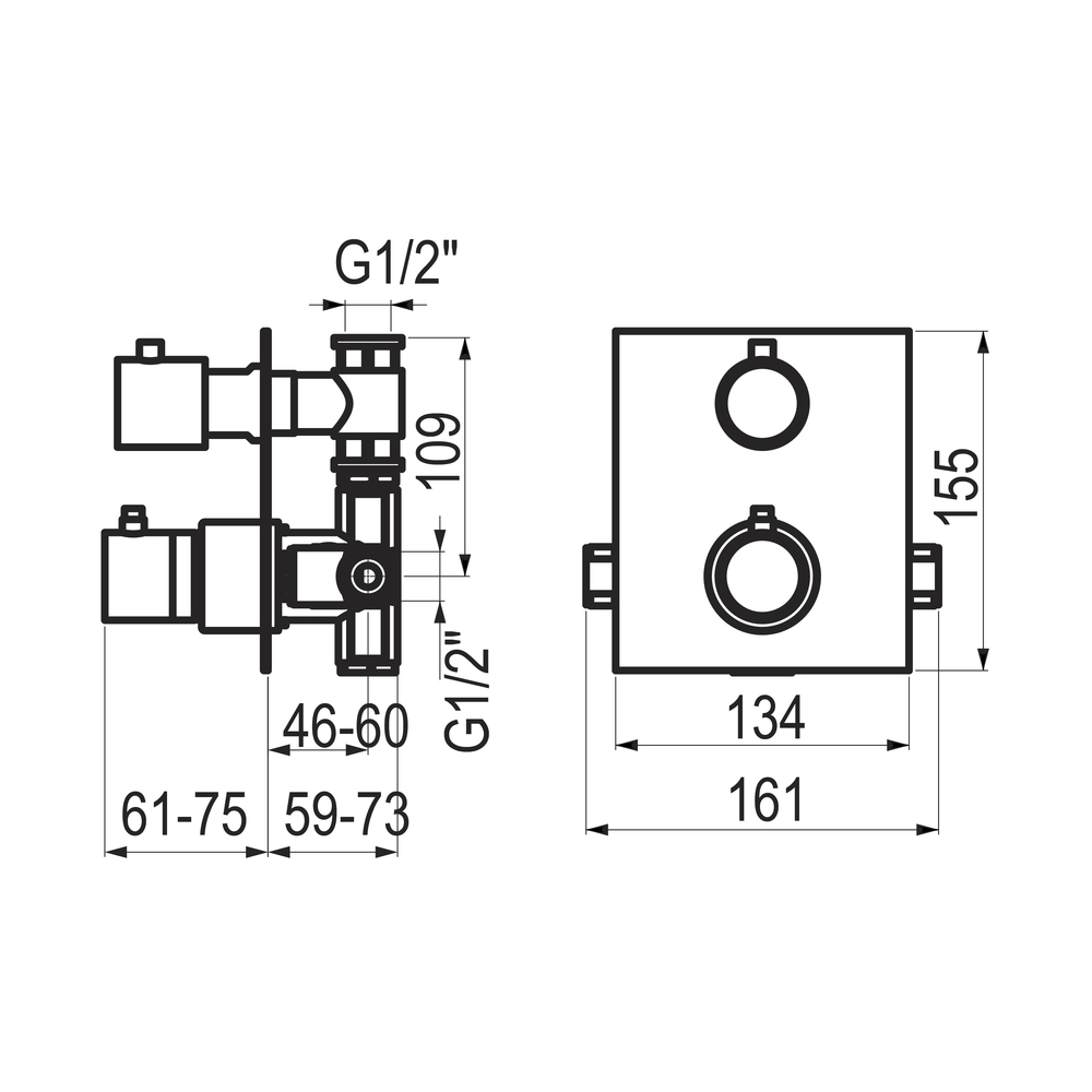 Grifo ducha termostática empotrable 1 vía Atlantis 2 entradas 1 salida