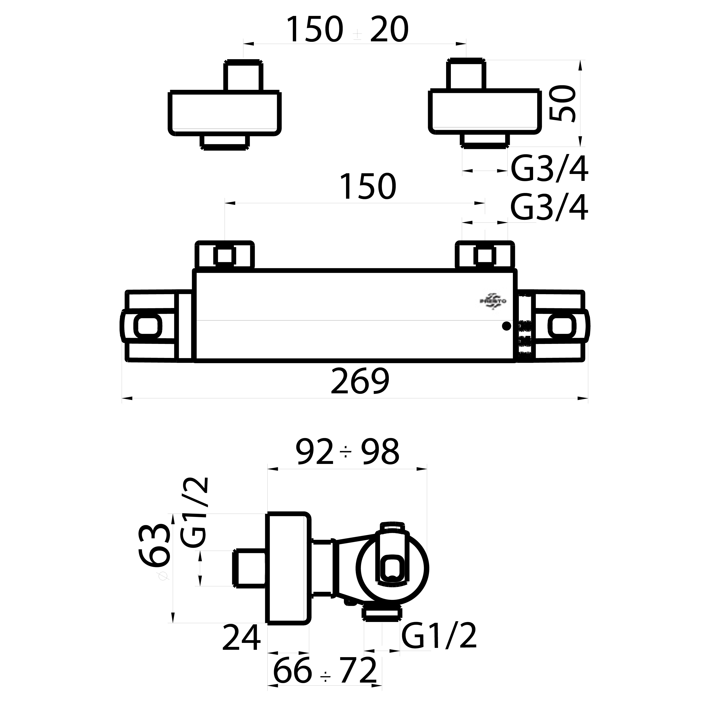 Grifo fabricado en latón con acabado cromado. Presión mínima de uso: 0,5 bar. Accionamiento mediante volante. Diámetro de cartucho 1/2 vuelta. Termostato diámetro 25 mm. Disponible: Con accesorios de ducha o Sin accesorios de ducha.