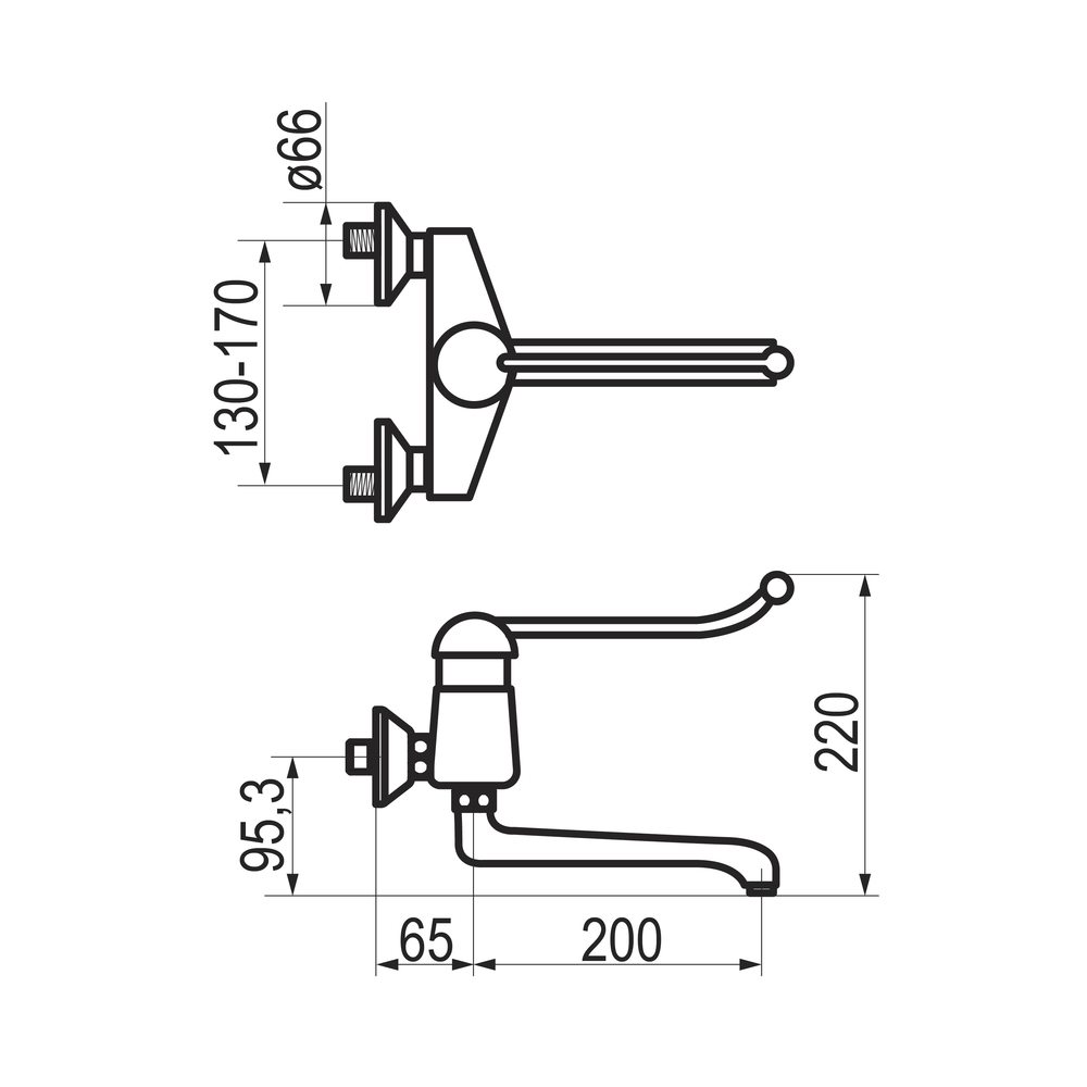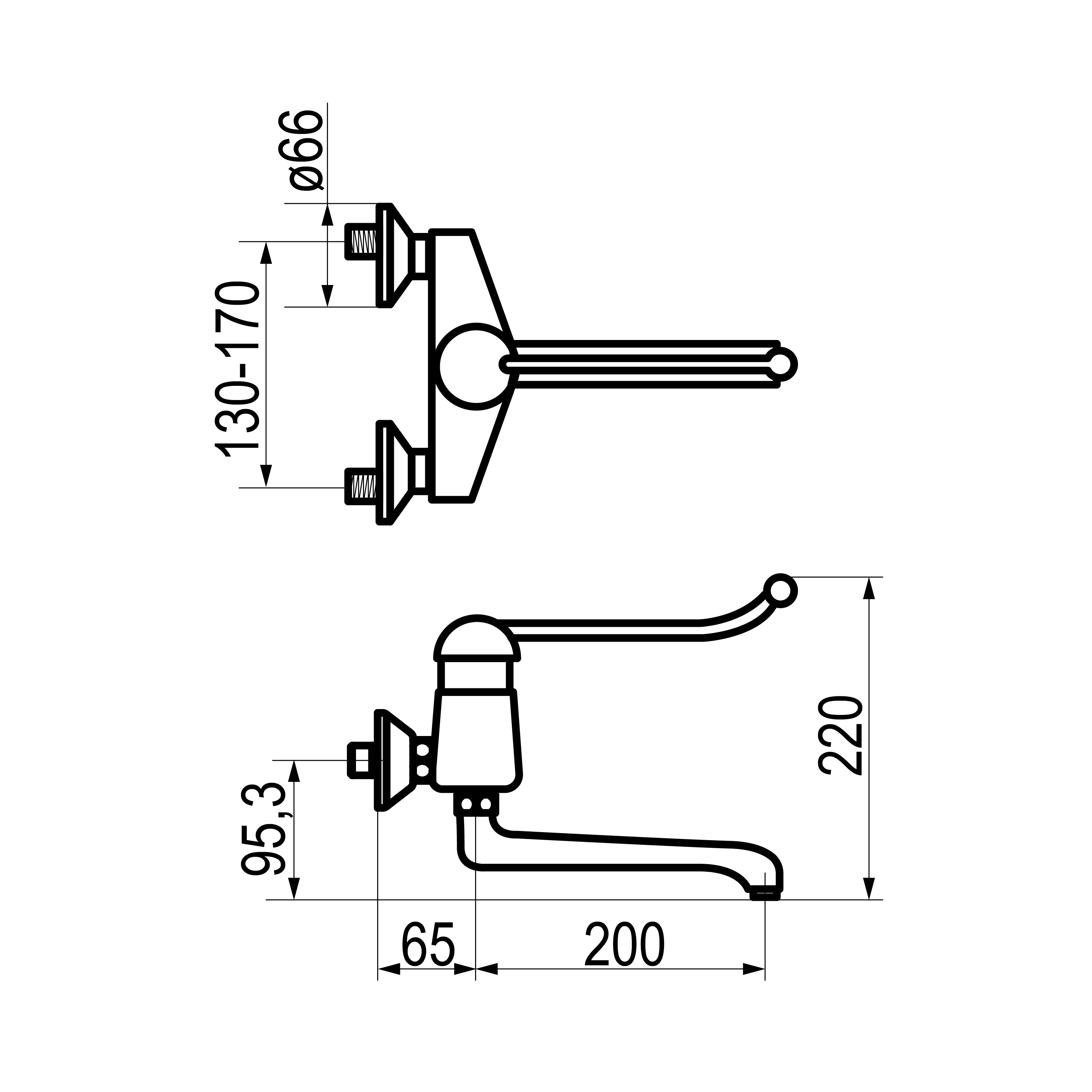 Grifo hospitalario lavabo mezclador mural con maneta gerontológica.