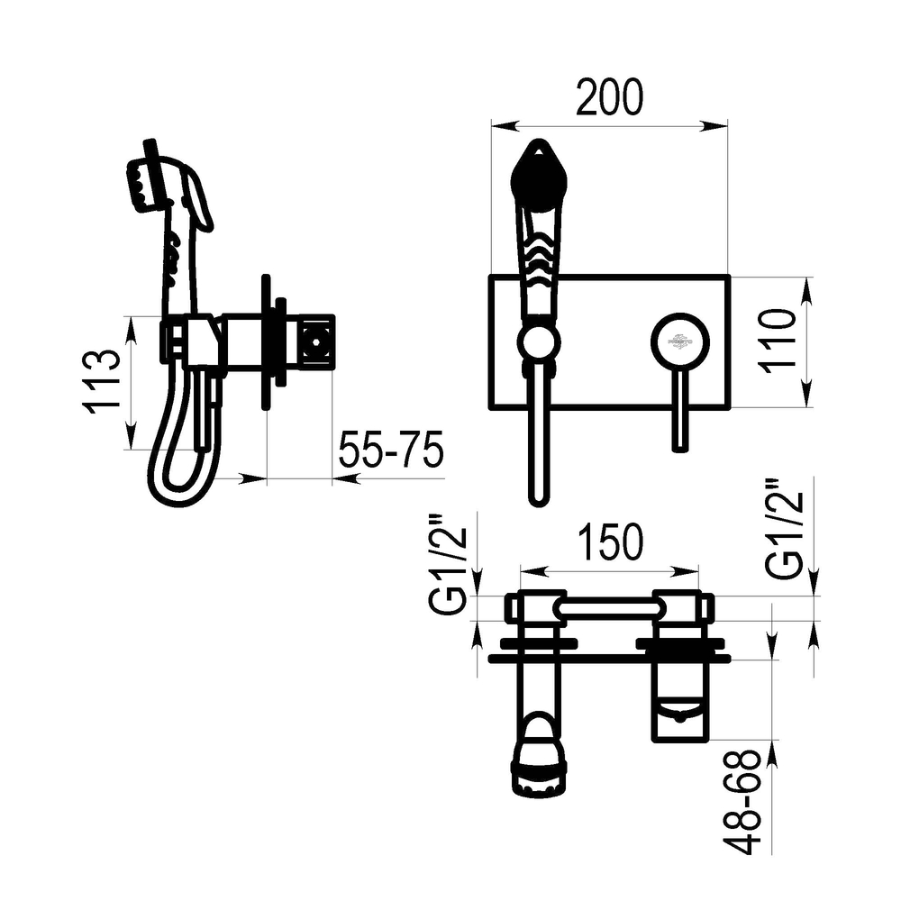 Grifo monomando ducha inodoro para instalación mural.
