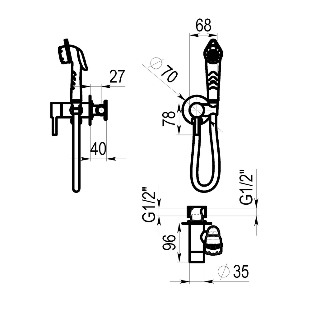 Grifo monomando ducha inodoro para instalación mural.