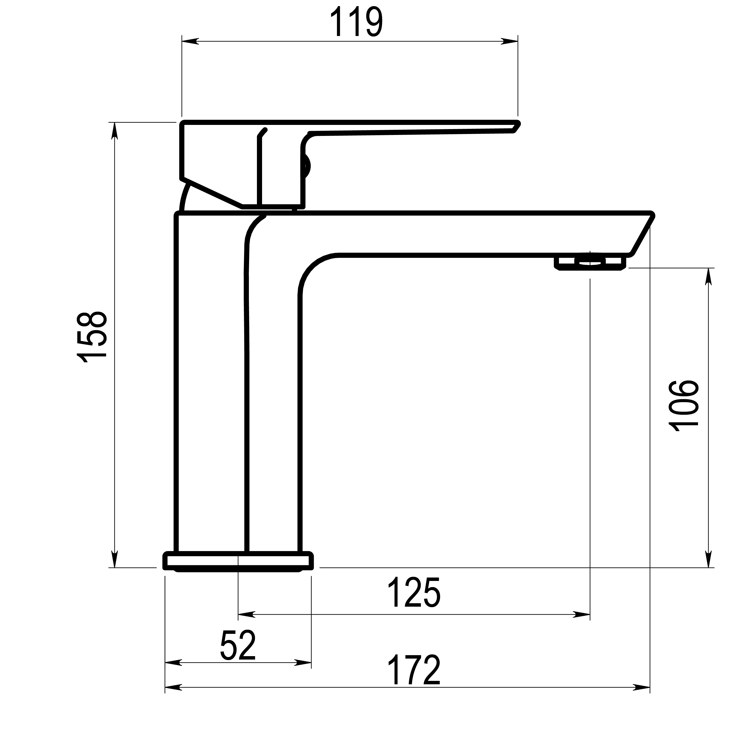 Grifo fabricado en latón con acabado cromado, blanco o negro. Presión mínima de uso: 0,5 bar. Accionamiento mediante maneta. Cuerpo para instalación en un único orificio. Cartucho sellado con discos cerámicos de diámetro 35 mm. Disponible: Con desagüe semi automático o Sin desagüe semi automático.