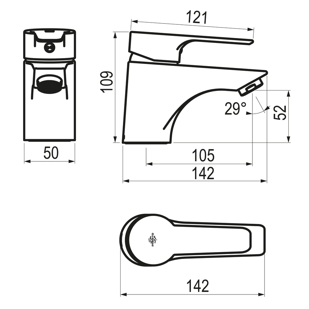 ^Grifo fabricado en latón con acabado cromado. Presión mínima de uso: 0,5 bar. Accionamiento mediante maneta. Cuerpo para instalación en un único orificio. Cartucho sellado con discos cerámicos de diámetro 35 mm. Disponible: Sin desagüe semi automático.