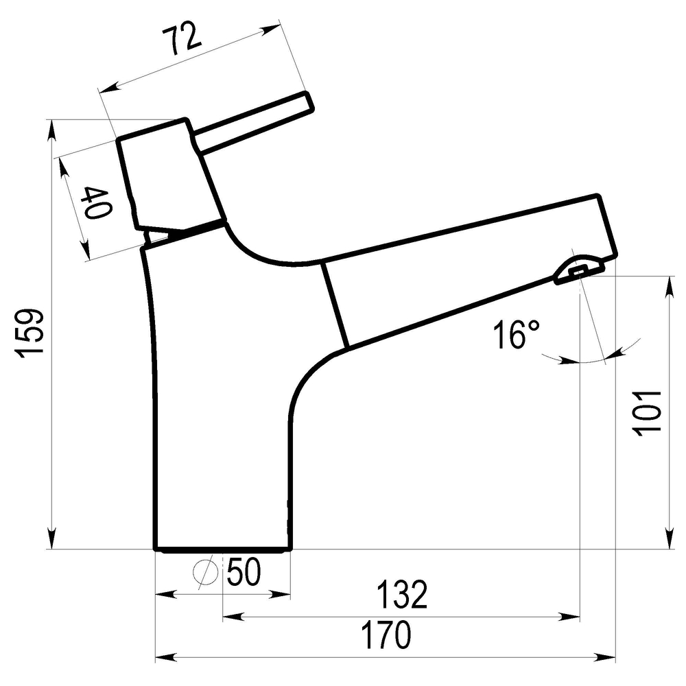 ^Grifo fabricado en latón con acabado cromado. Presión mínima de uso: 0,5 bar. Accionamiento mediante maneta. Cuerpo para instalación en un único orificio. Cartucho sellado mezclador con discos cerámicos de diámetro 35 mm.
