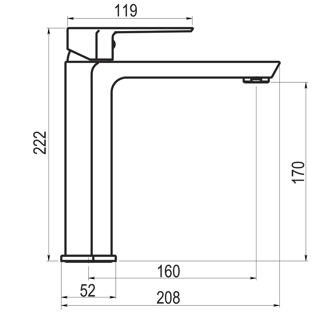 Grifo monomando lavabo para instalación sobre repisa.