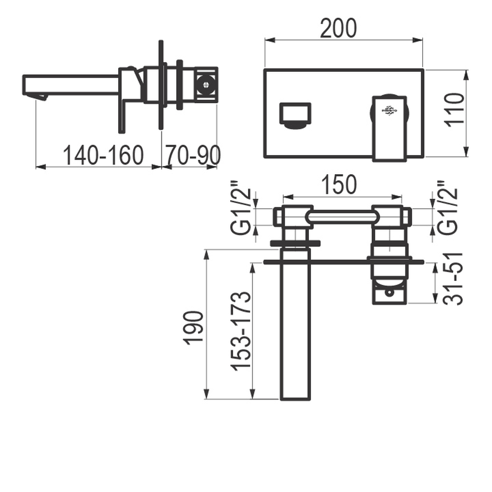 Grifo fabricado en latón con acabado cromado. Presión mínima de uso: 0,5 bar. Accionamiento mediante maneta. Cartucho sellado mezclador con discos cerámicos de diámetro 35 mm. Placa embellecedora regulable.