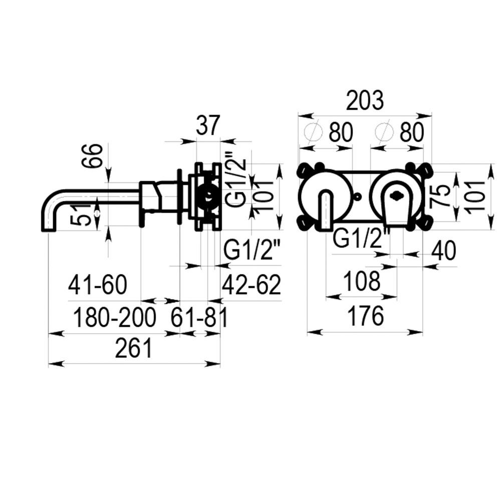 Grifo lavabo mural sin placa Koa caño corto 200 oro pvd