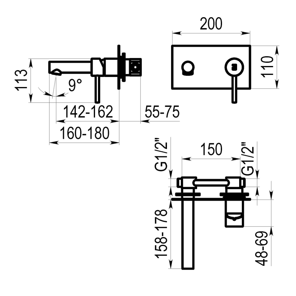 Grifo fabricado en latón con acabado cromado. Presión mínima de uso: 0,5 bar. Accionamiento mediante maneta. Cartucho sellado con discos cerámicos de diámetro 35 mm. Placa embellecedora regulable. Disponible: Sin accesorios de ducha.