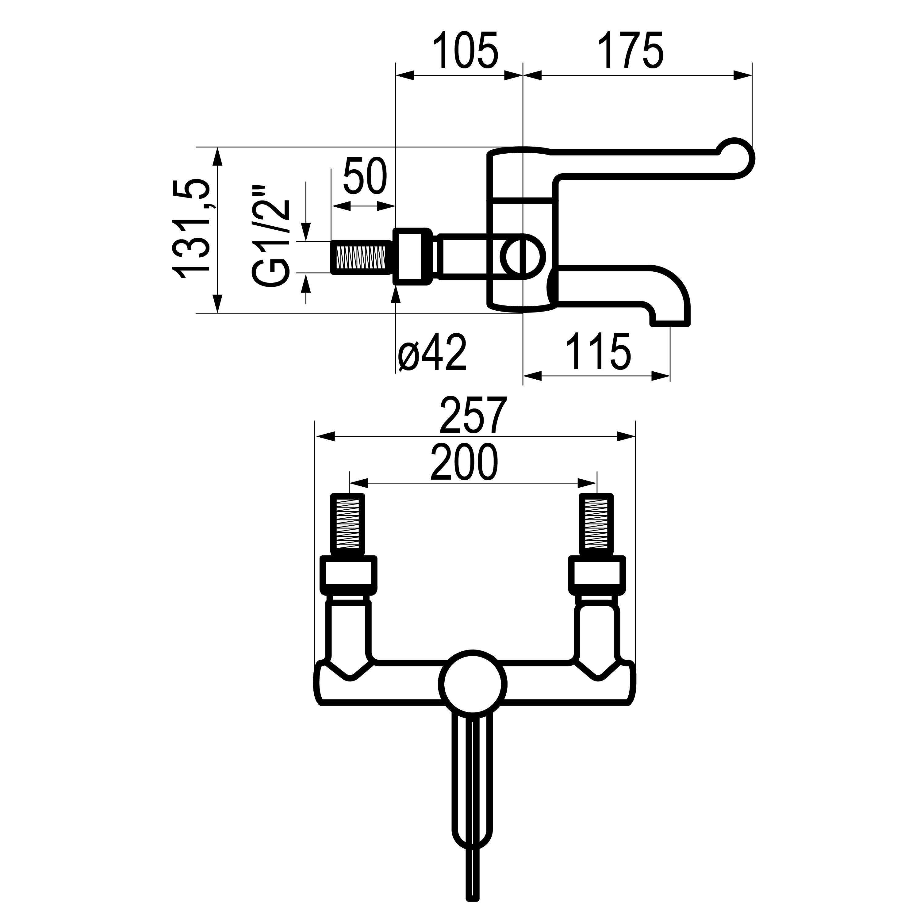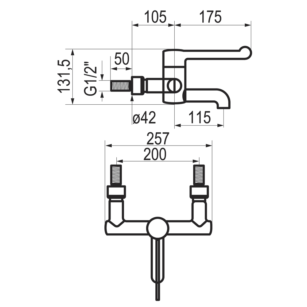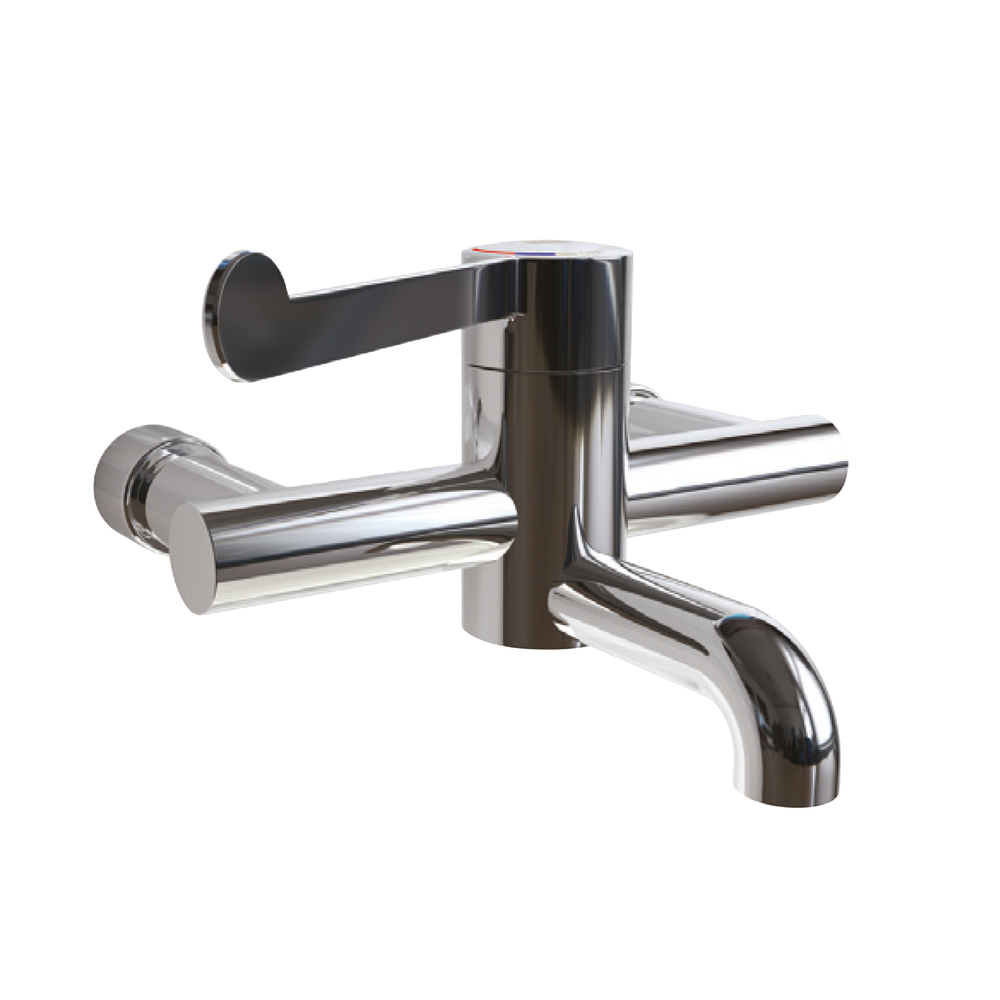 Grifo mural mezclador gerontológico para lavabo o fregadero.