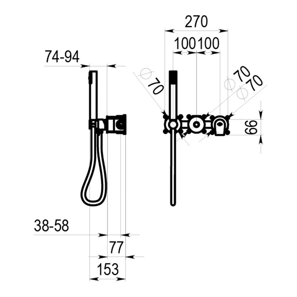 Grifo monomando ducha para instalación mural empotrable de 2 vías.