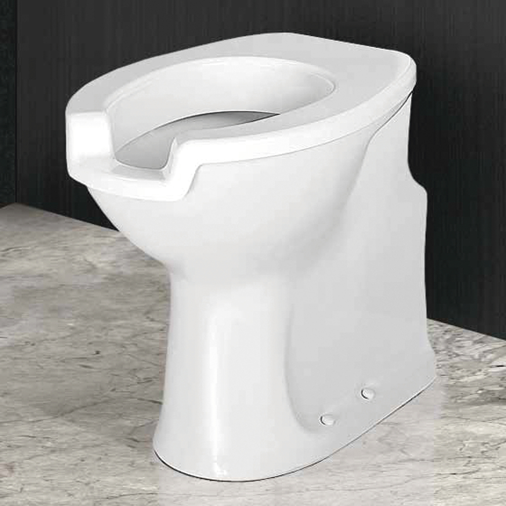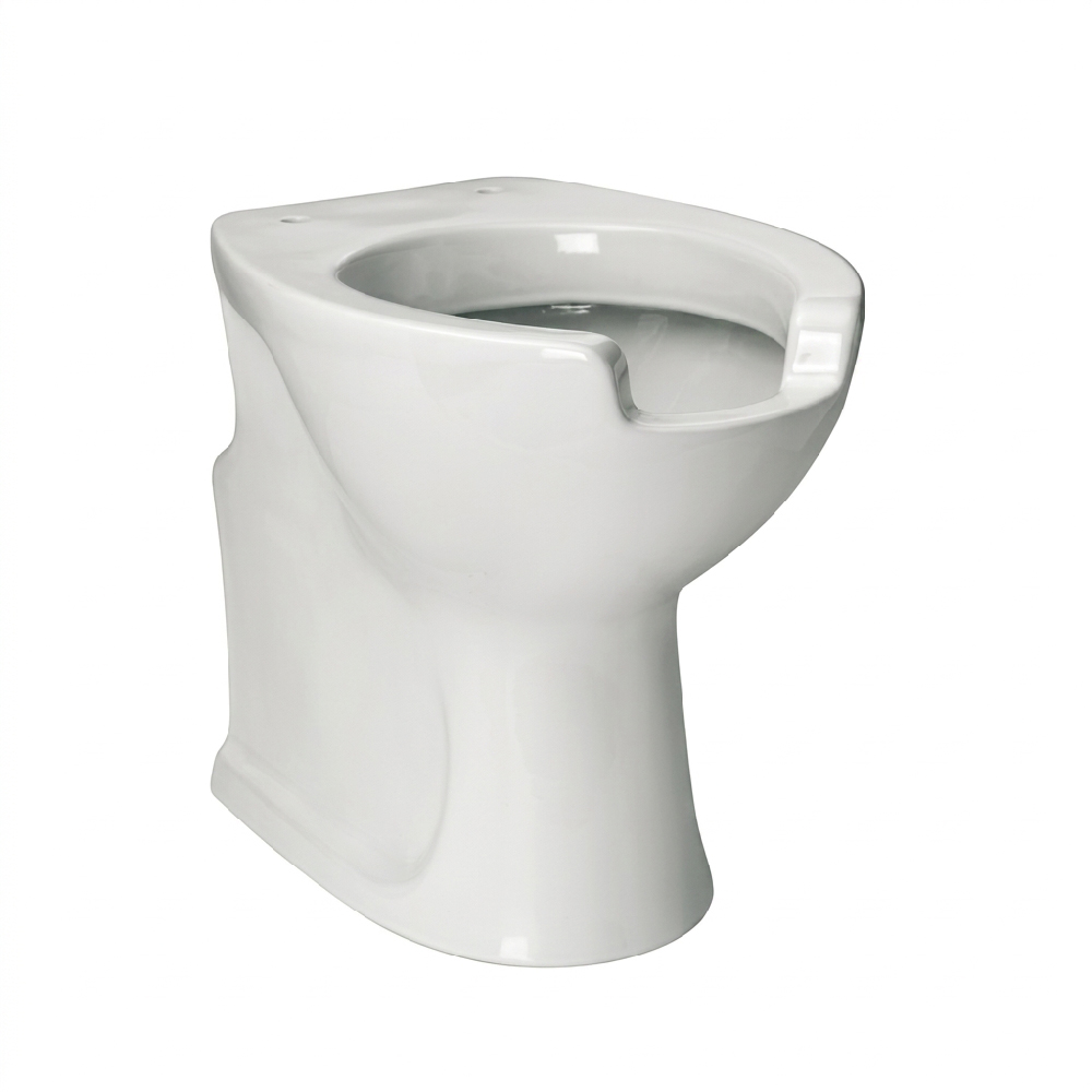 Inodoro en porcelana de fijación al suelo con diseño ergonómico para personas con discapacidad o movilidad reducida.