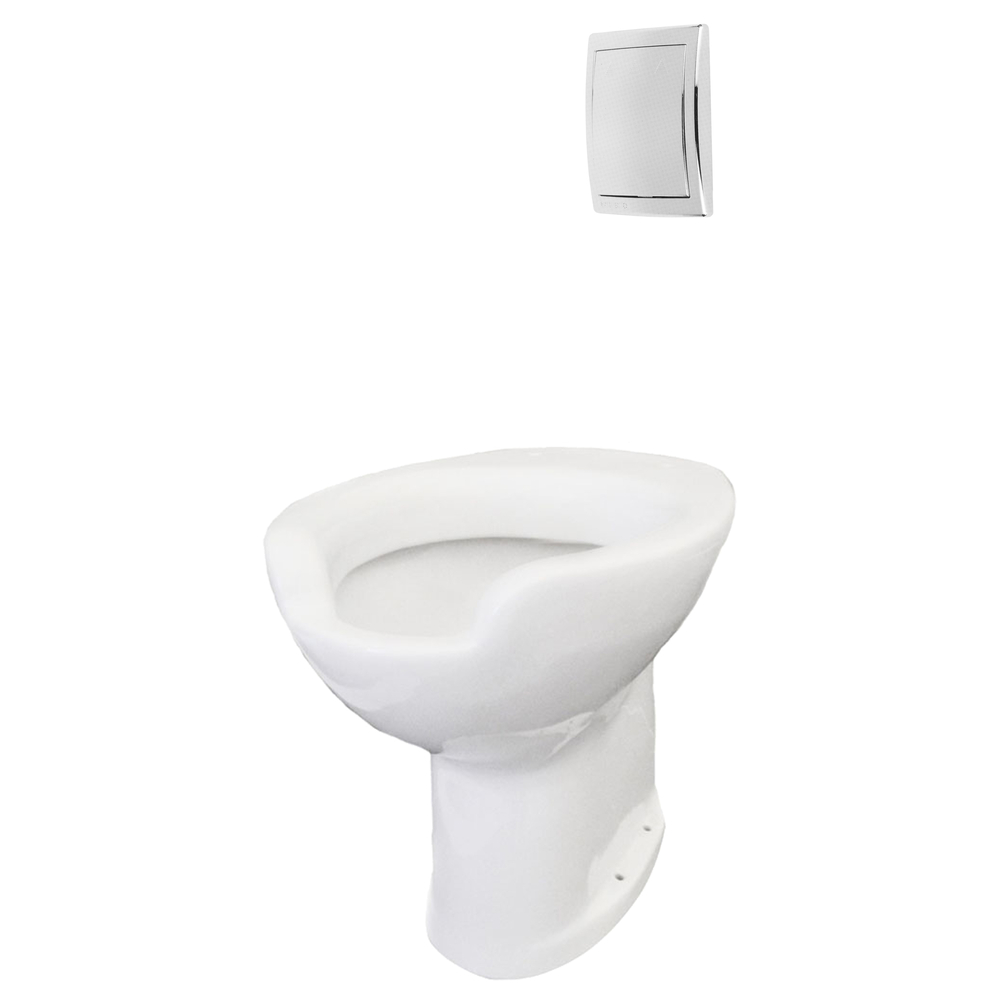 Inodoro en porcelana de fijación al suelo con diseño ergonómico para personas con discapacidad o movilidad reducida.