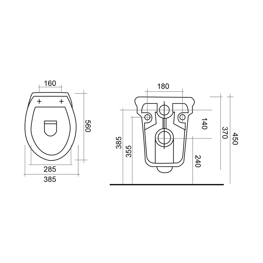 Inodoro suspendido en porcelana de fijación mural,con diseño ergonómico,para personas con discapacidad o movilidad reducida,apertura frontal,para su uso como bidet,vaso alargado,altura elevada,para facilitar el traslado de la silla de ruedas al inodoro,salida a pared.