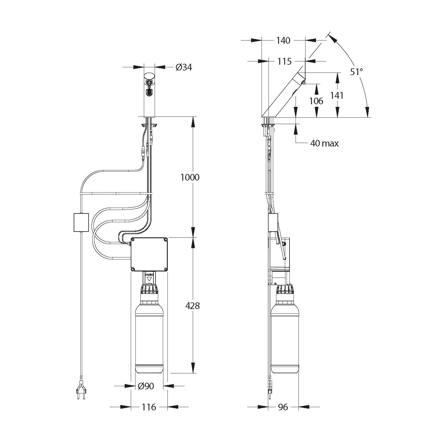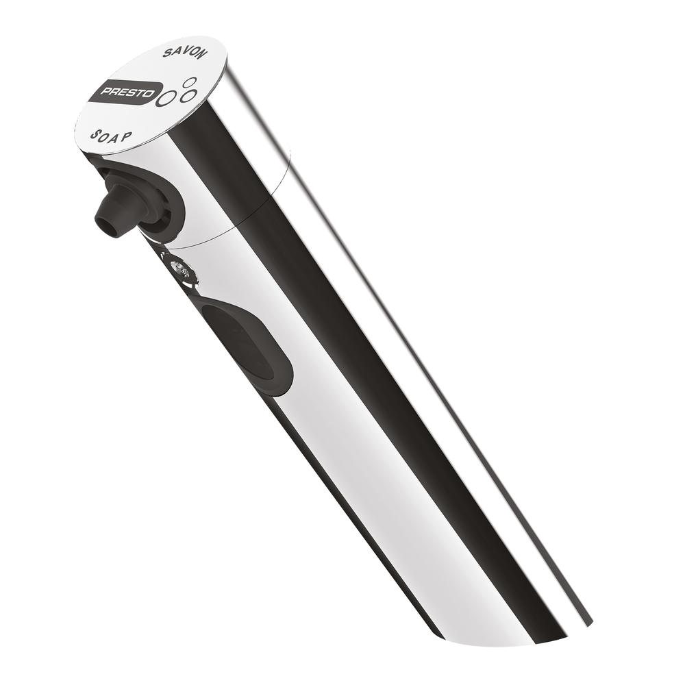 Jabonera electrónica repisa con sensor para jabón líquido o espuma. Dispensador de jabón líquido o espuma PRESTO LINEA®. Fabricado en acero inoxidable con cubierta acabado cromo. Activación sin contacto mediante detección de manos por infrarrojos. Apto para personas con movilidad reducida, personas mayores y niños. Rango de detección: 10 15 cm. Se entrega por defecto en función de dispensación de jabón en espuma. Capacidad Botella de depósito de 1 l fijada a la carcasa. Alimentación Red con transformador 230V/6V para enchufar a la toma de pared. Suministrado con: Botella de depósito de 1 L, transformador enchufable, boquilla de espuma y boquilla de jabón.