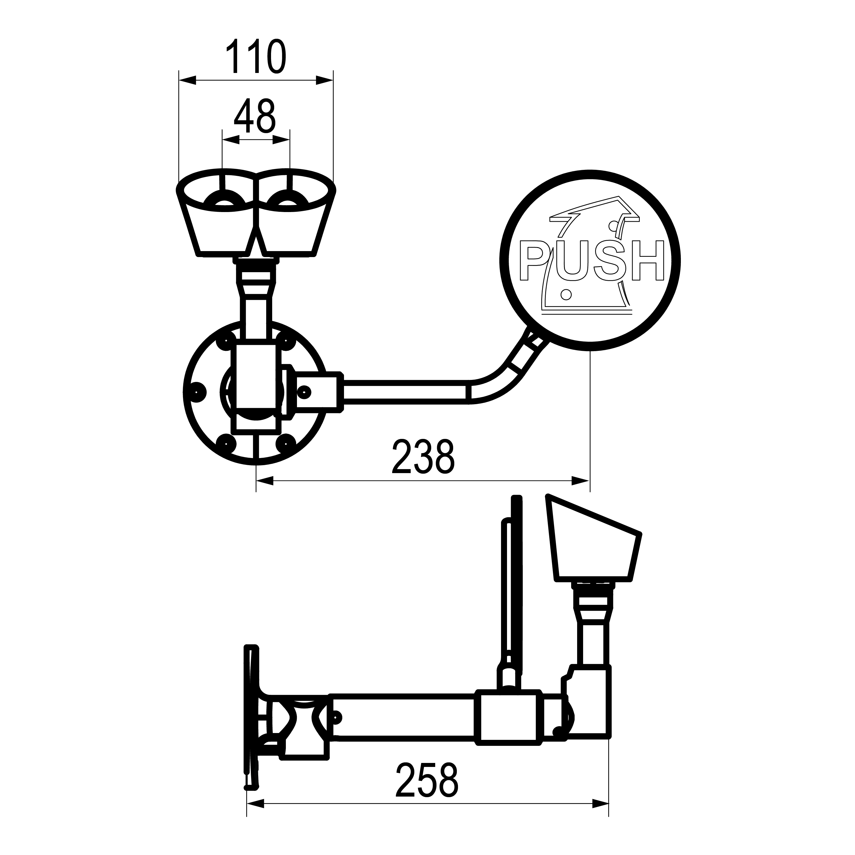 El sistema de seguridad pasa de cerrado a abierto en 1 segundo o menos y permanece abierto hasta que el usuario lo pare. Debe ser instalado muy próximo al lugar de trabajo. Presión mínima de uso: 1,5 bar. Copa de goma en caucho EPDM. Lava ojos con dos salidas. Pulsador de emergencia para flujo de agua. Fácil instalación y rápida activación. Cumple con las normas EN 15154 y ANSI Z 358.1: 2004. Peso aproximado: 2 kg.