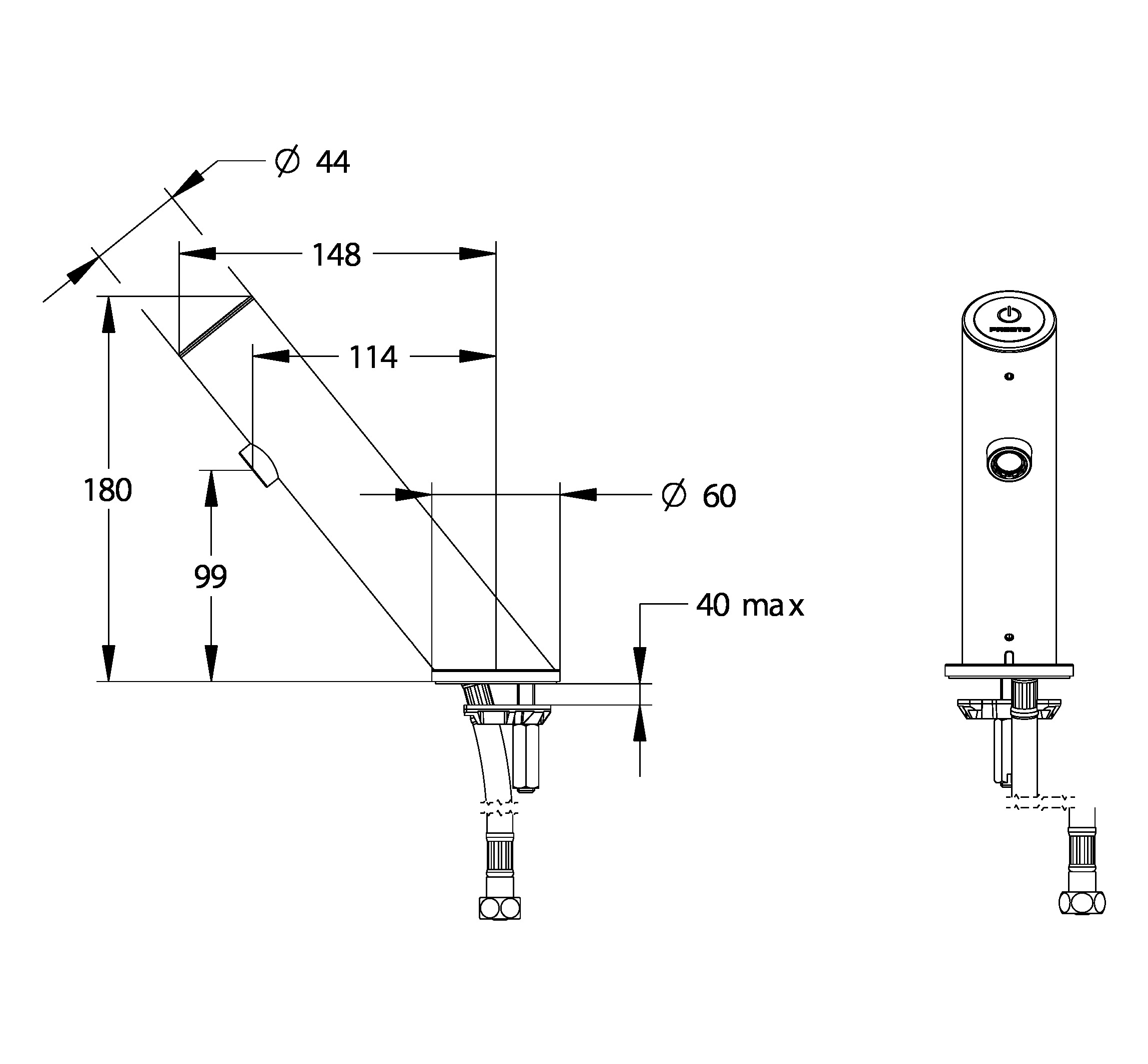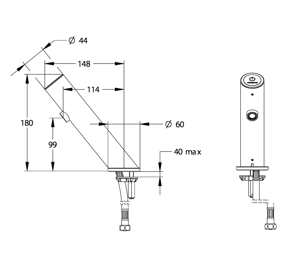 Grifo electrónico para lavabo con tecnología Touch por sensor táctil y fijación sobre repisa.