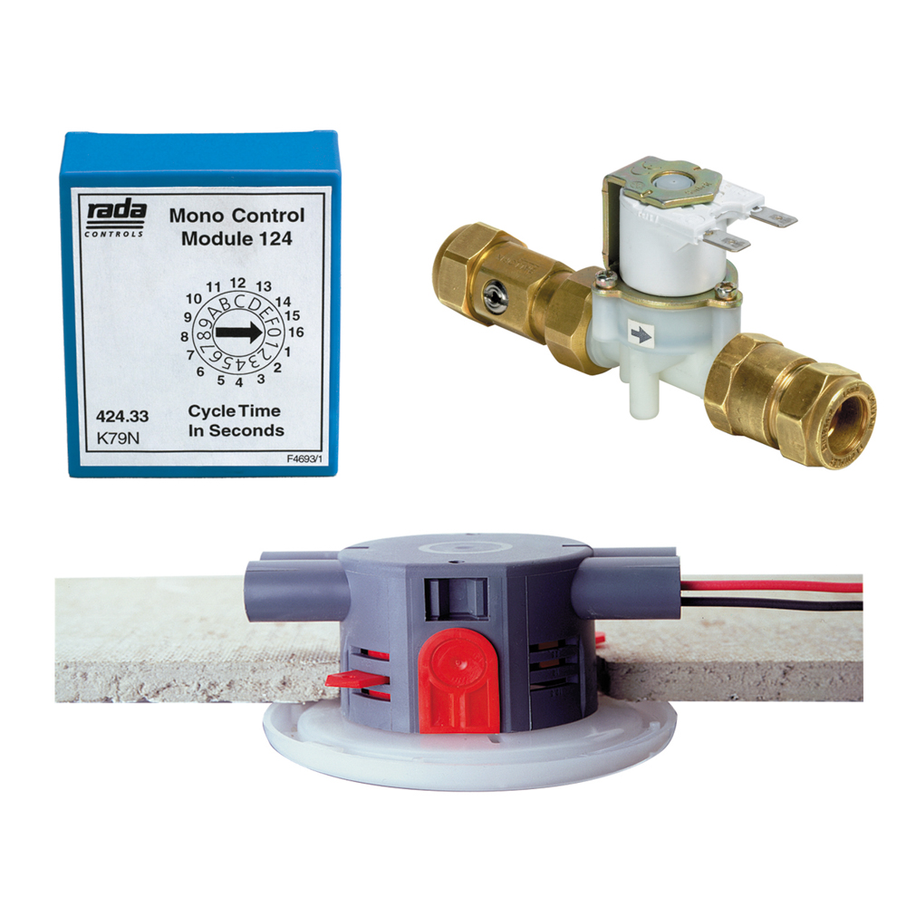 Conjunto de sensor, unidad de control individual y electroválvula de sencilla instalación y programación. *Sistema higiénico que no requiere contacto para su activación. *Sistema antivandálico, con componentes fácilmente ocultables y sensores sin tornillos visibles. *Sistema flexible y económico que permite gran ahorro de agua. *Elementos conectados entre sí mediante cables con baja tensión que otorgan gran seguridad a la instalación. *Distancia de detección: de 0,5 a 2,5 m. *Electroválvula de 12 V. 1/2. *Base y pantalla del detector en ABS. *Protección IP 55. *Alimentación: 12 V/50Hz. *Cable de 3m de 2 hilos.