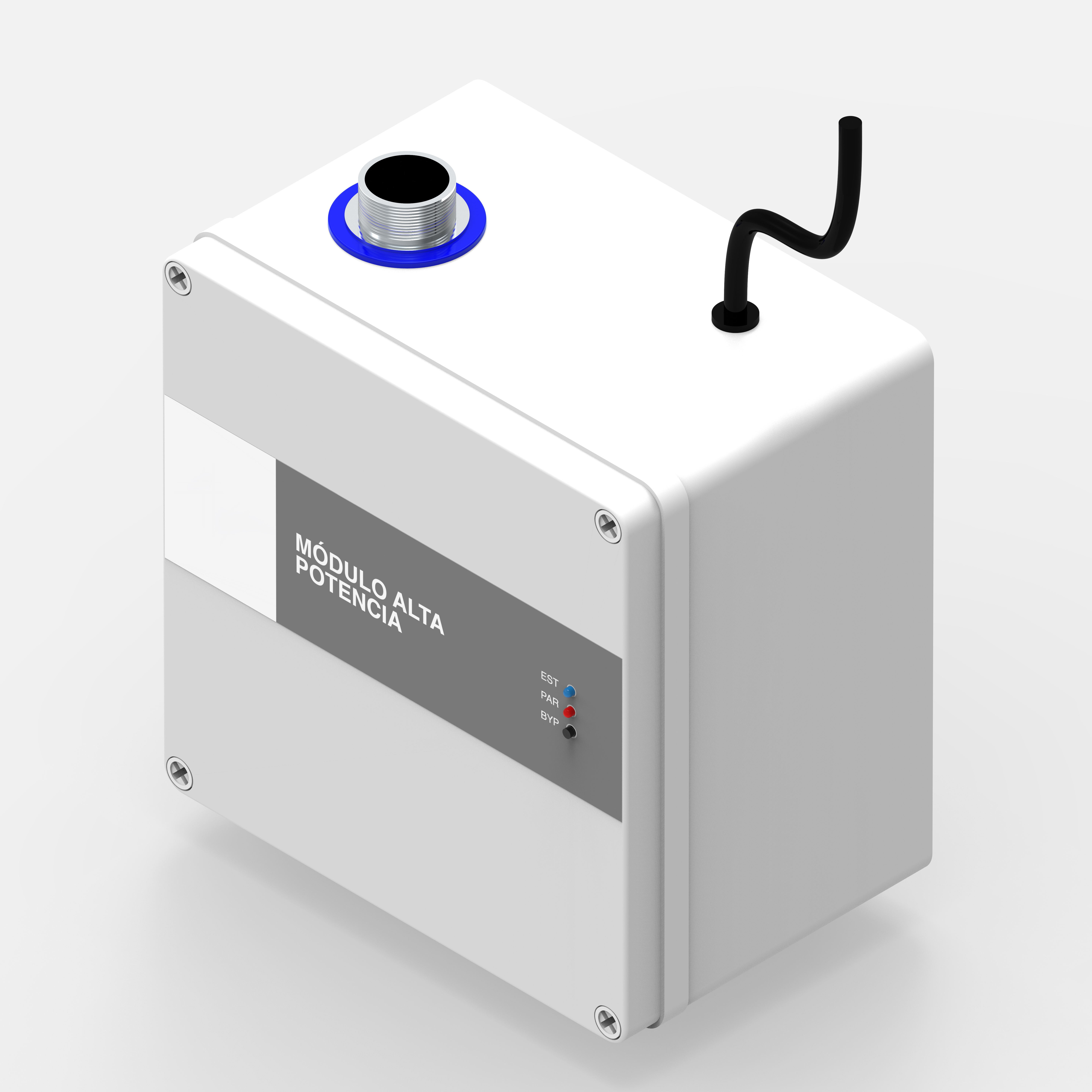 ^Módulo de Potencia; el módulo de potencia se instala en la entrada de agua fría del calentador, e impulsará el agua caliente hacia el módulo de bypass instalado, en cuanto se active el dispositivo.