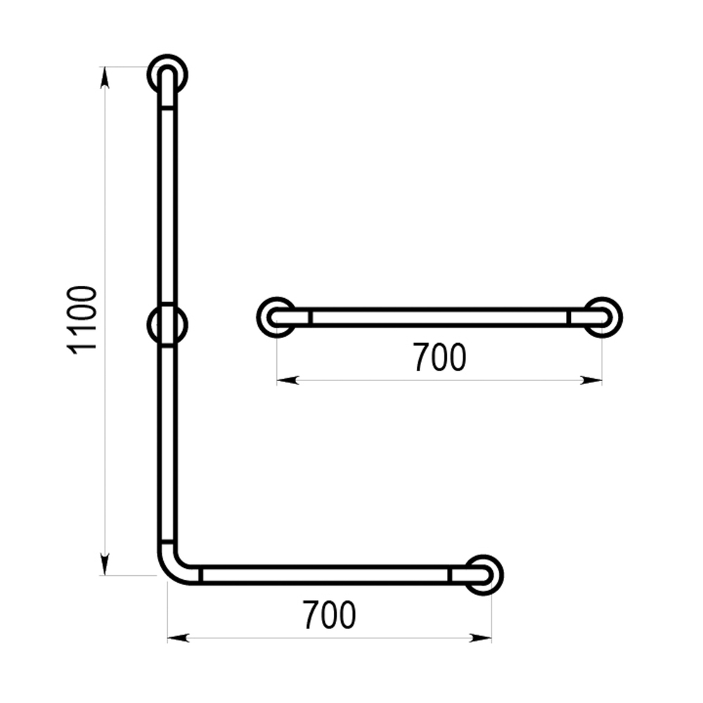 Pack barra de apoyo recta nylon 700 mm y Barra de apoyo ángulo larga nylon