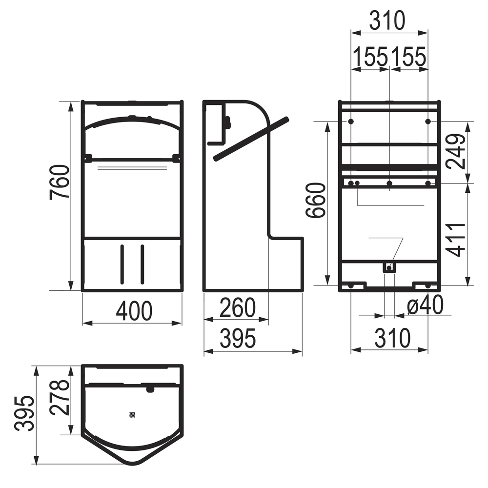 Funcionamiento electrónico para mejorar la higiene. Realiza la descarga tras la retirada del usuario.Alimentación es mediante pila estándar CR 2 o transformador suministrados con el producto. Desagüe del equipo de diámetro 40 mm.