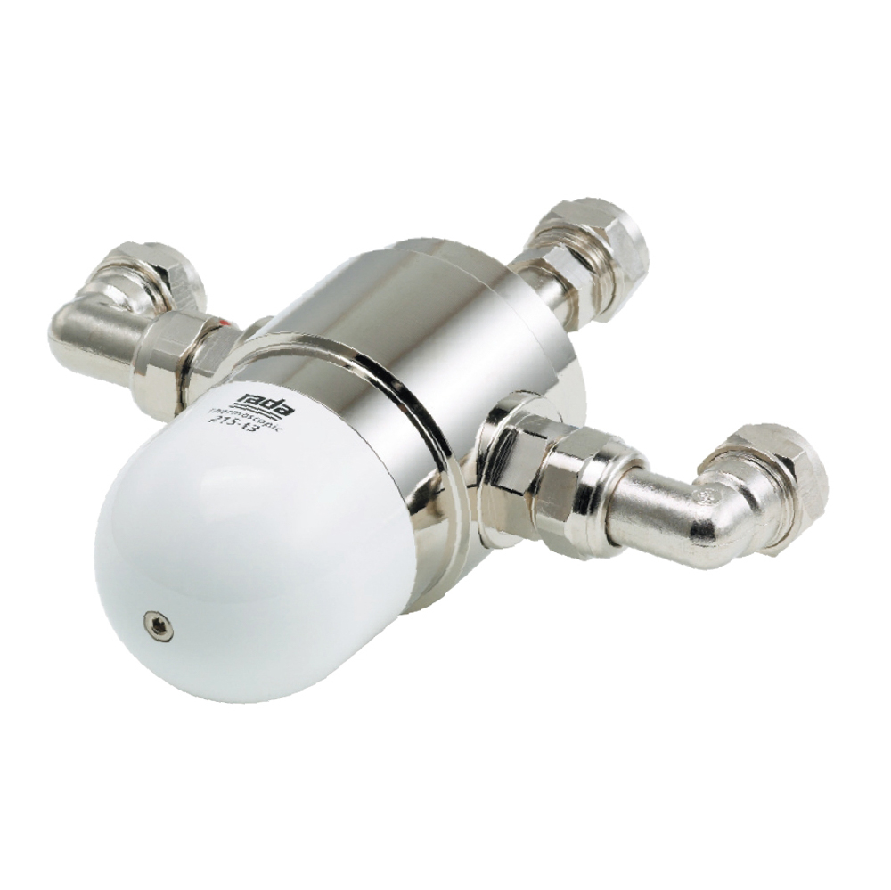 Con válvulas antirretorno. *Control termostático preciso en un gran rango de temperaturas y caudales. *Alta fiabilidad conseguida mediante el uso de un cartucho termoscópico sellado y fácilmente intercambiable, que asegura que el agua suministrada se mantenga a la temperatura seleccionada. *Gran velocidad de reacción ante variaciones de presión o temperatura en el suministro, que incrementan el confort del usuario y reducen las molestias de cambios de temperatura. Fácil instalación y mantenimiento gracias al acceso sencillo a los filtros y las vávulas antirretorno para su limpieza. *Posibilidad de limitar la temperatura máxima de salida de agua para evitar riesgo de quemadura a excepción de modelos dk. *Los modelos de dk mantienen el selector de temperatura bloqueado y solo puede ser accionado por el personal autorizado. pcionalmente, en el resto de válvulas 215, el mando puede bloquearse a una temperatura fijada con una pieza opcional. *Gran polivalencia de conexión. *El producto se suministra con las conexiones estándar: caliente izquierda, fría derecha, salida arriba; pero admite el intercambio de las entradas mediante el sencillo cambio de posición del cartucho, y la opción de salida or la parte inferior únicamente cambiando un tapón de posición. *Modelos DK con salida posterior. *Sistema de seguridad que corta la salida de agua en caso de fallo en el suministro de alguna de las entradas. Cuerpo de latón cromado resistente a la corrosión. *En el caso de modelos dk capuchón de plástico blanco. Incluyen válvulas antirretorno y filtros en cartuchos de fácil acceso. *Presión dinámica mínima: 0,1 bar. *Presión dinámica mínima recomendada: 0,15 bar. *Baremo de presión máxima dinámica: 10:1. *Presión estática máxima: 10 bar. *Temperatura óptima de funcionamiento entre 30º y 50ºC. *Temperatura máxima seleccionada de fábrica de 43ºC. *Rango de temperatura: de fría hasta 70ºC. *Temperatura mínima del agua fría: 1ºC. *Temperatura máxima del agua caliente: 85ºC.