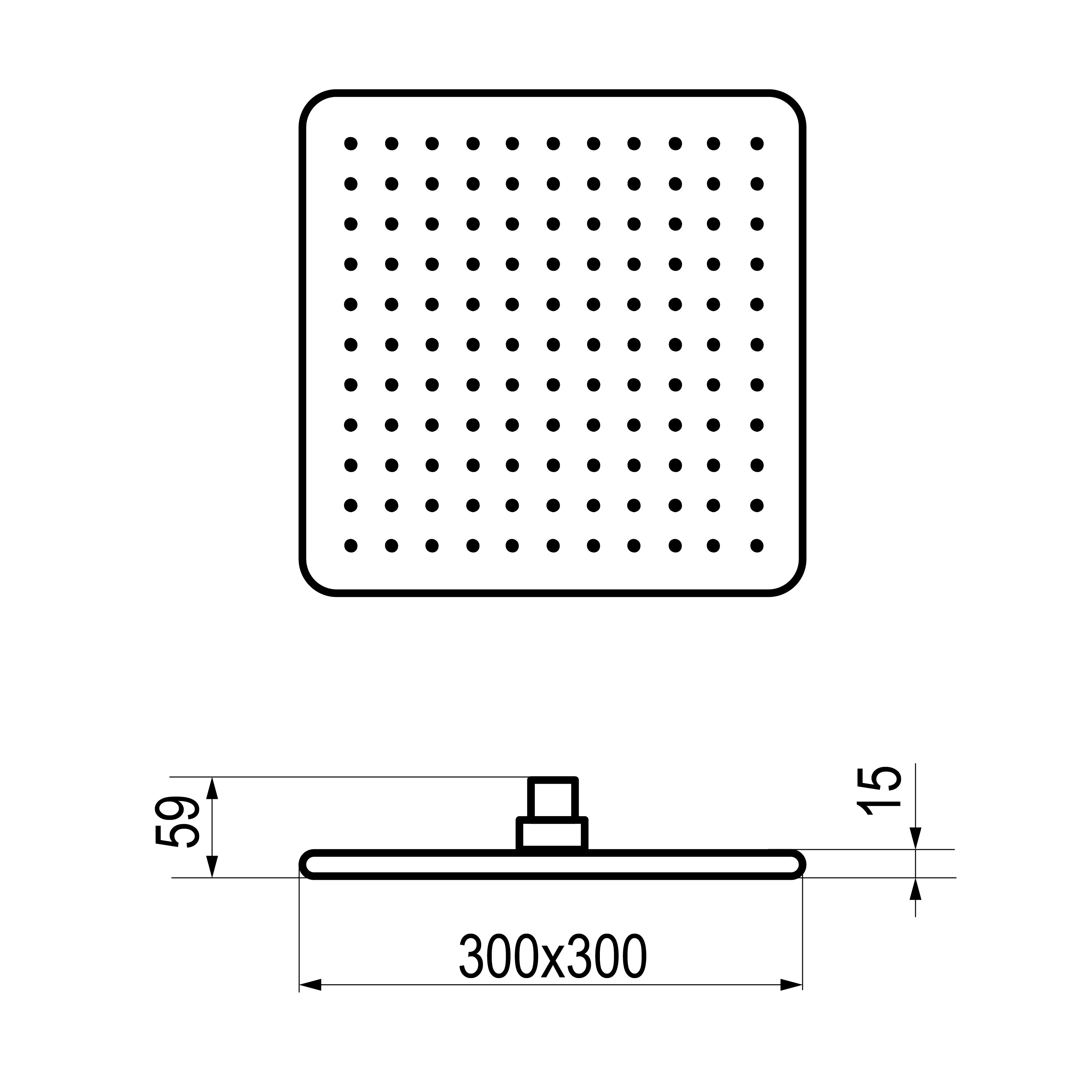 Rociador de ducha cuadrado de carbono 300x300 mm.
