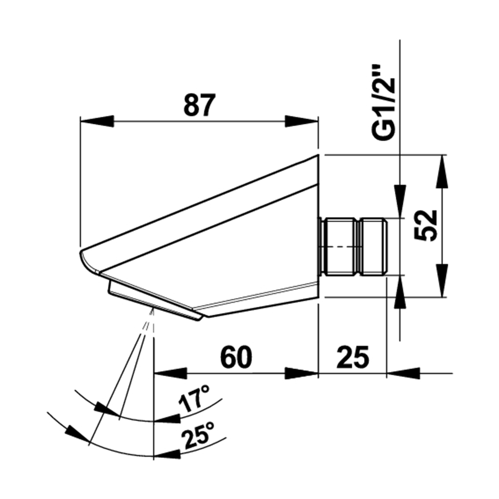 Rociador de ducha fijo orientable en 2 posiciones 17° o 25°.