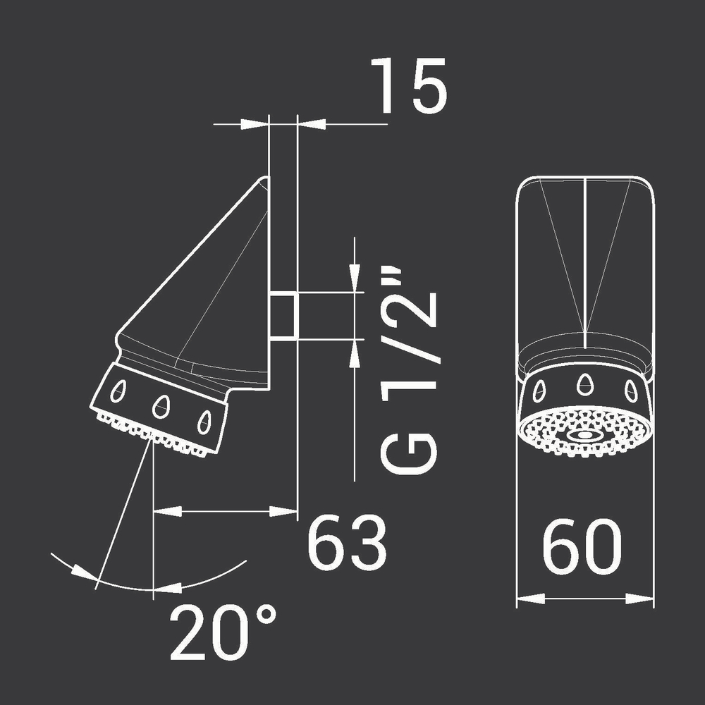 Entrada G1/2" macho con una longitud de rosca de 15 mm.