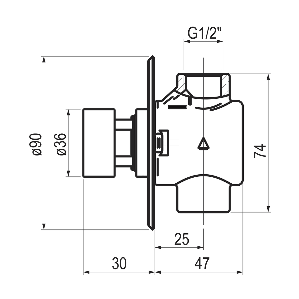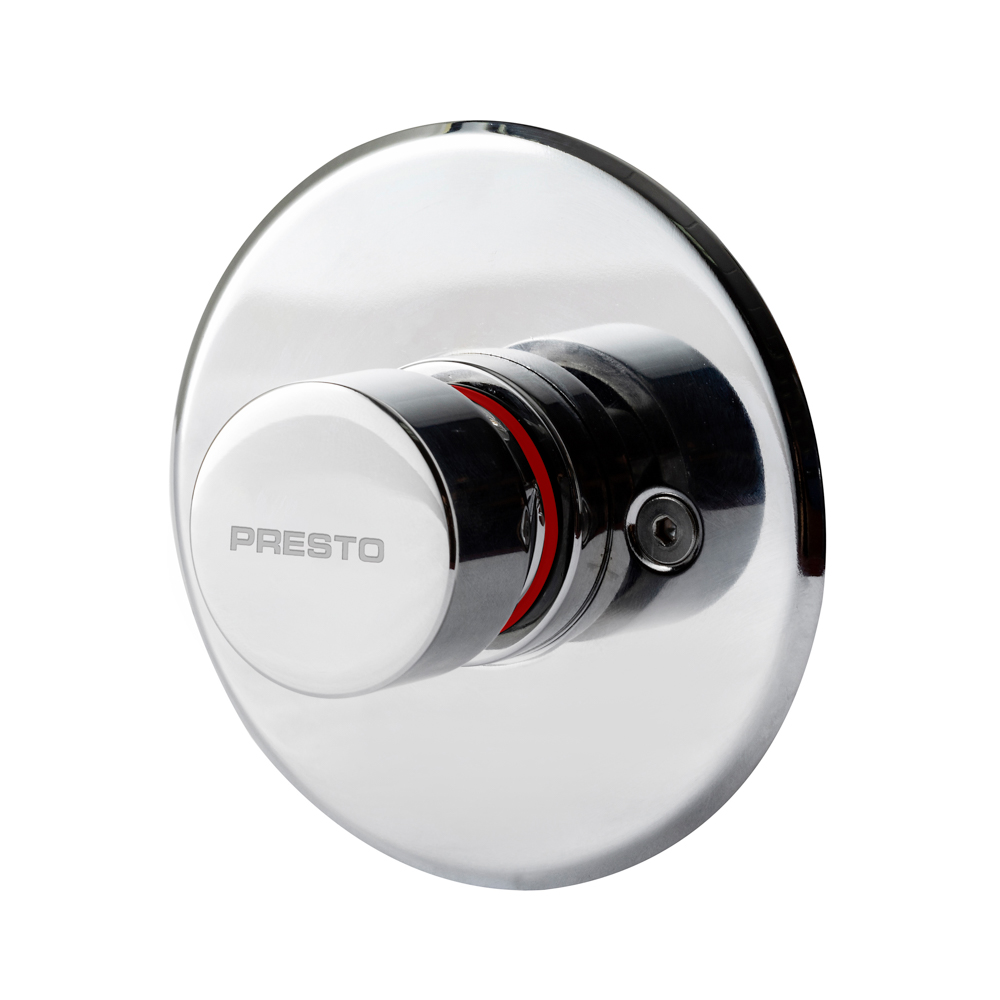 Grifo temporizado de un agua para instalación empotrada con cuerpo de latón y embellecedor plano. Sistema de vaciado automático para prevención de legionella.
