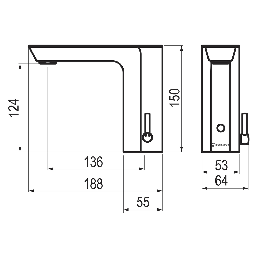 Grifo electrónico Sensia con célula de detección por sensor para lavabo mezclador, fijación sobre repisa.